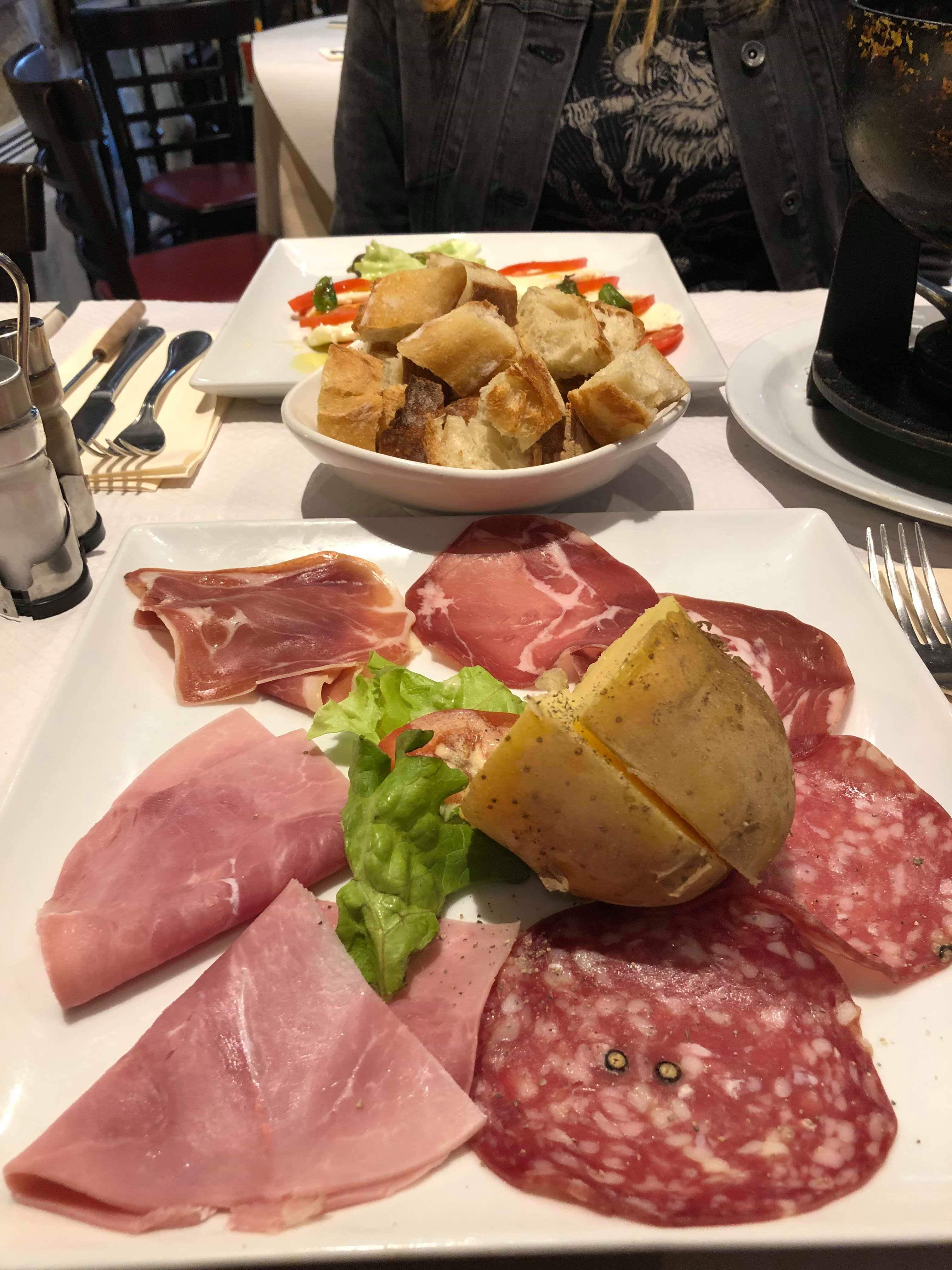 Nous avons pris notre entrée et avons décidé de partir. Nous avons eu la charcuterie et j'avais une tranche de dinde de charcuterie et 2 tranches de salami. Le restaurant est une grosse arnaque !