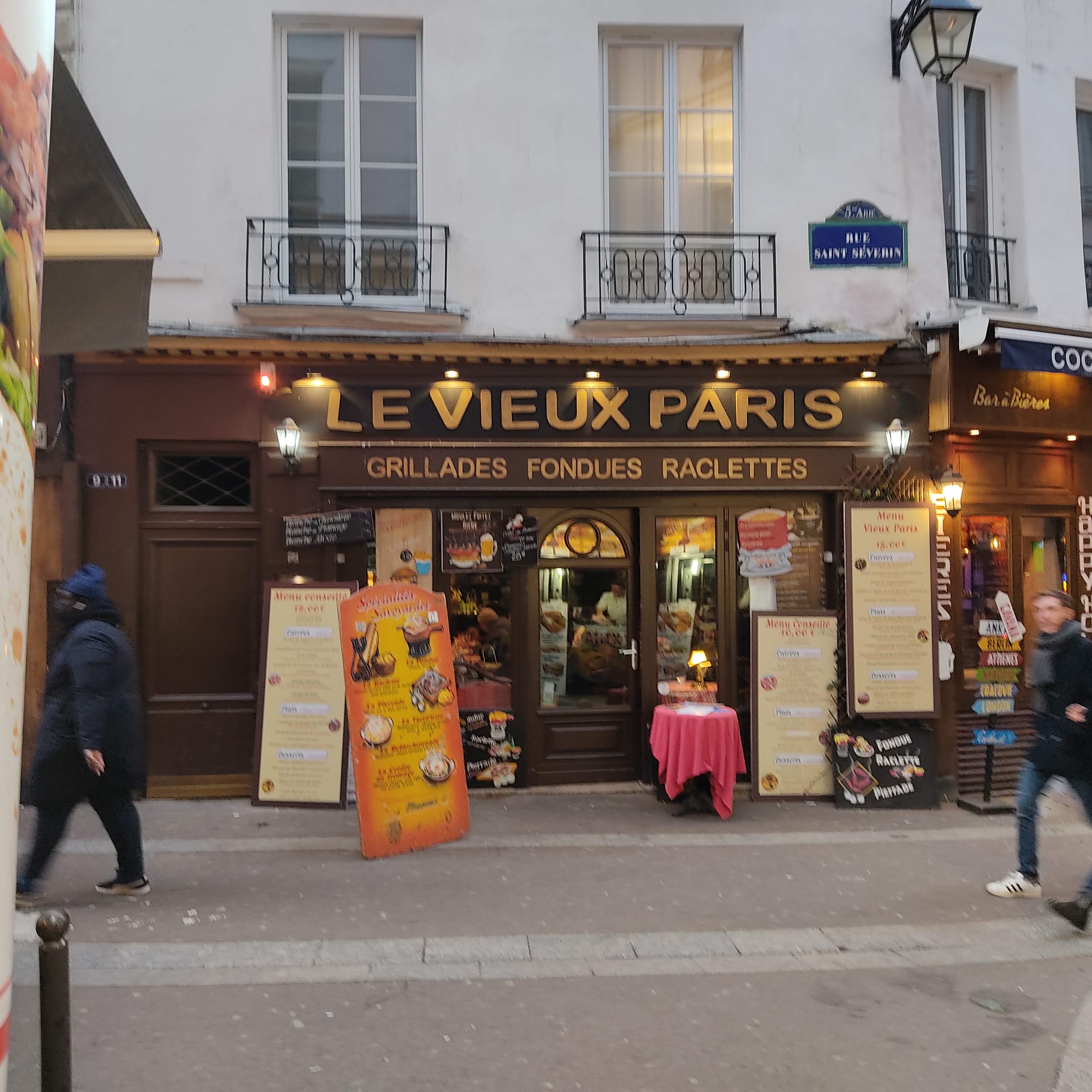 La famille propriétaire du restaurant Le Vieux Paris n'exploite plus l'enseigne depuis le décès brutal de son fondateur Un couple de locataire gérant indélicat a saboté les locaux et la cuisine de cet établissement dont le sérieux, la propreté, le respect, le cadre chaleureux et familial nous éblouissait depuis 20 ans Ce restaurant n'a rien à voir avec La Petite Hostellerie Rue de la Harpe