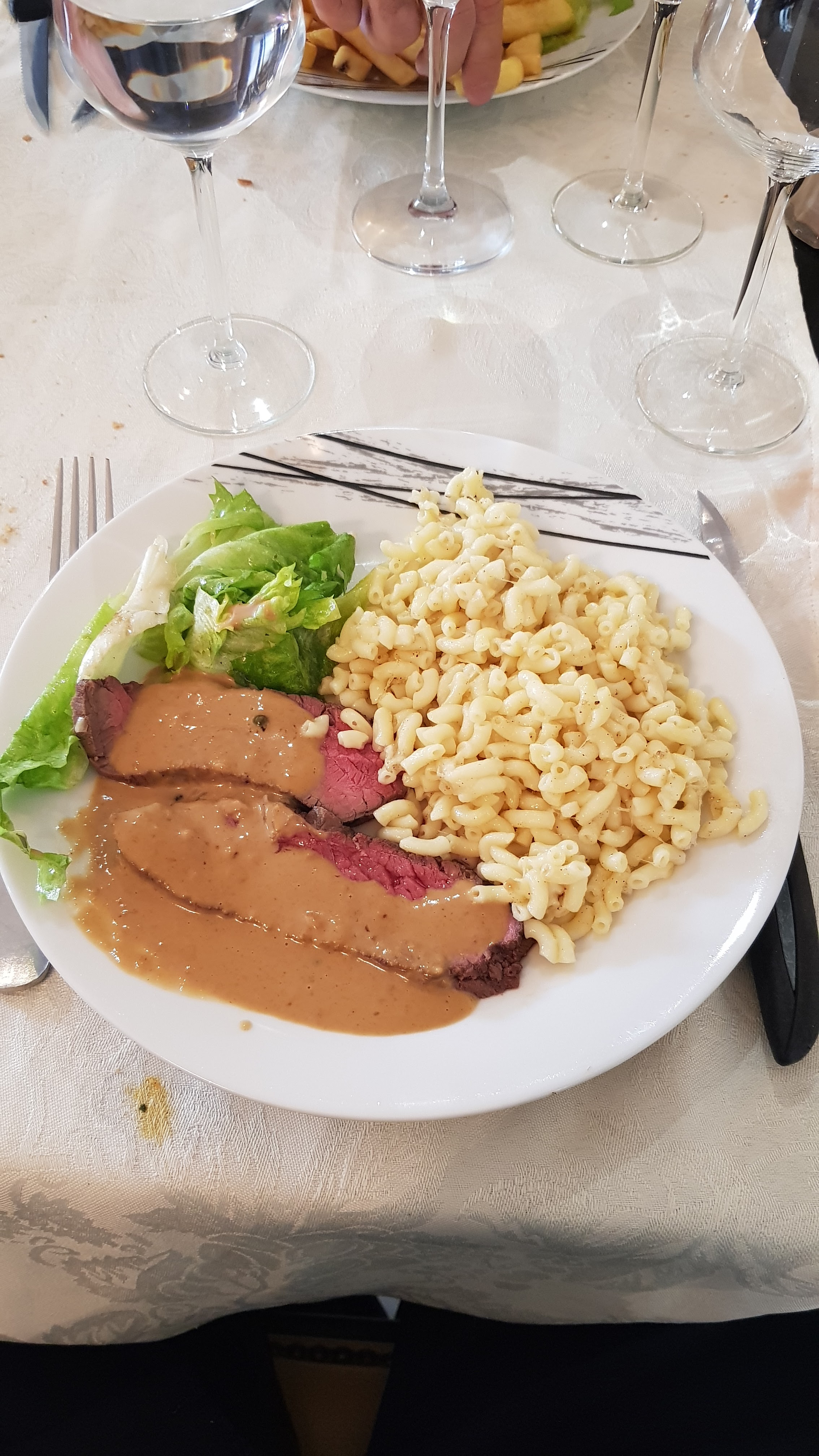Pour 12 euros j'j'ai eu du mal â tout finir.Venu de nouvelle Calédonie je me demande comment font ces restaurateurs pour s' en sortir sans compter le vin â volonté. La patronne et la serveuse sont très agréable si vous passez dans loin ca vaut le détour.