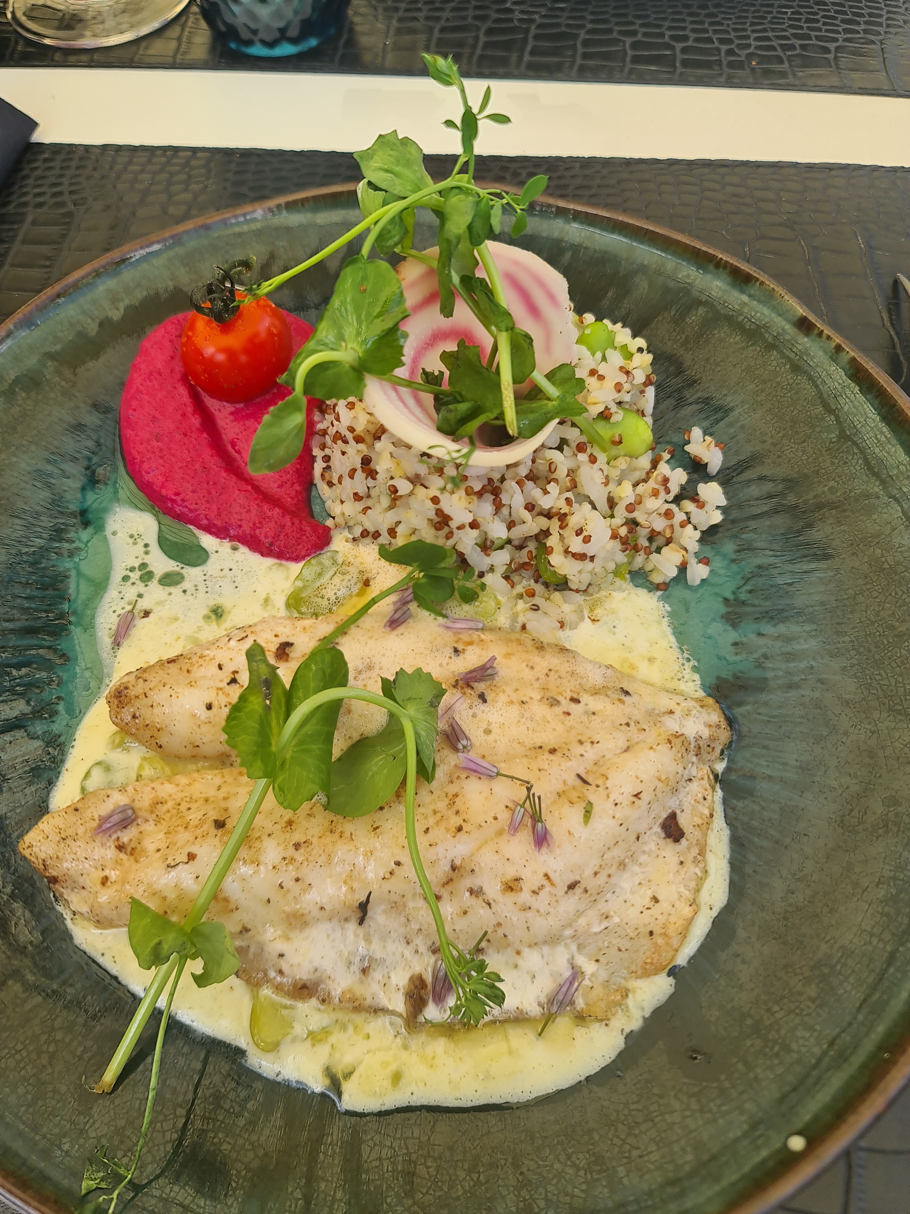Le cadre es très jolie et sympathique le souci c est que l ont es pressé pour manger mon poisson etait trop cuit et les plats sont apporter tellement vite que lont a pas le temp d apprecier le moment du repas si l ont veu ce détendre je ne le conseil absolument pas ,personel stresse et stressant .pour Lee prix de l addition je suis déçu 😭😭😭