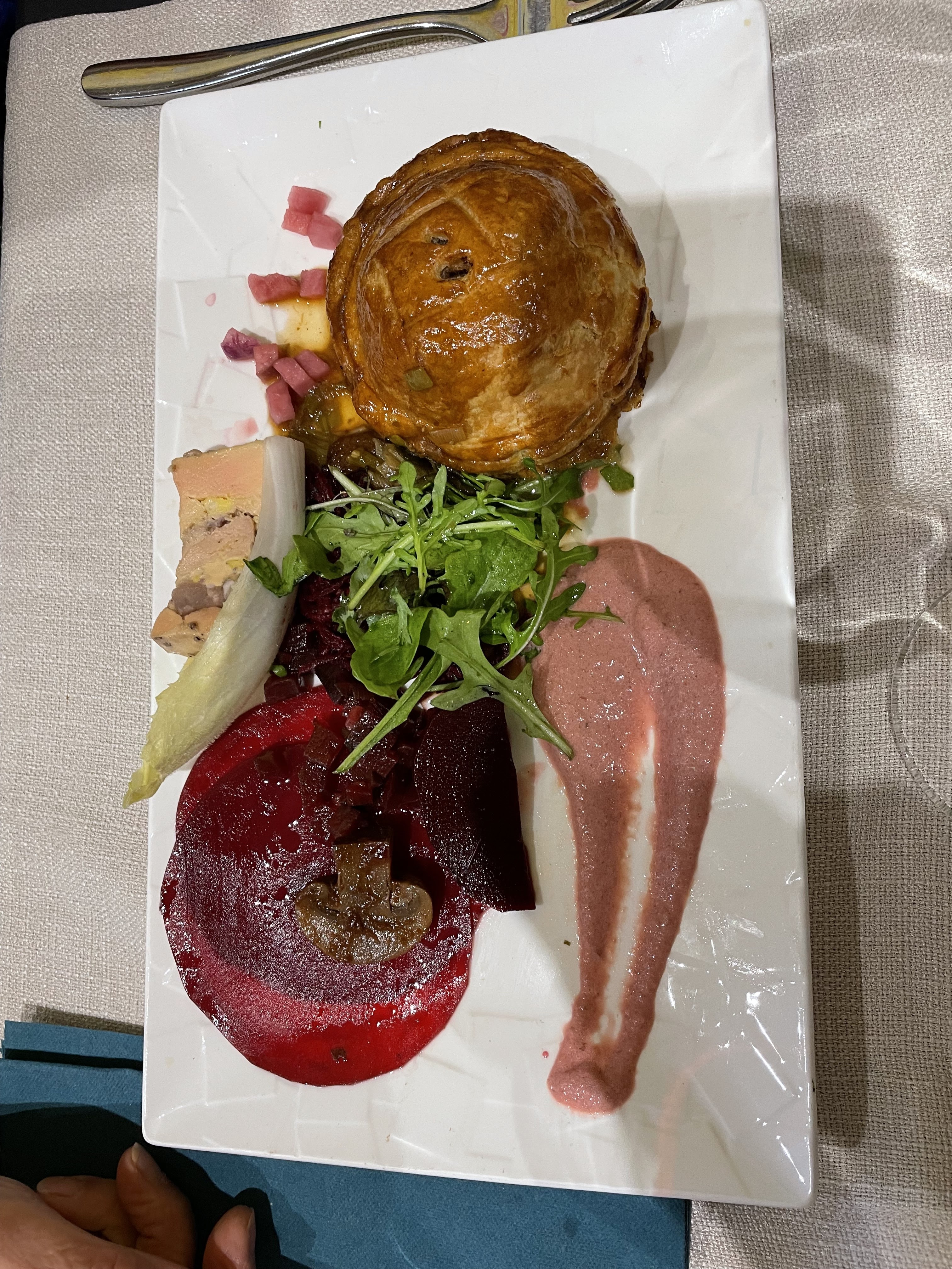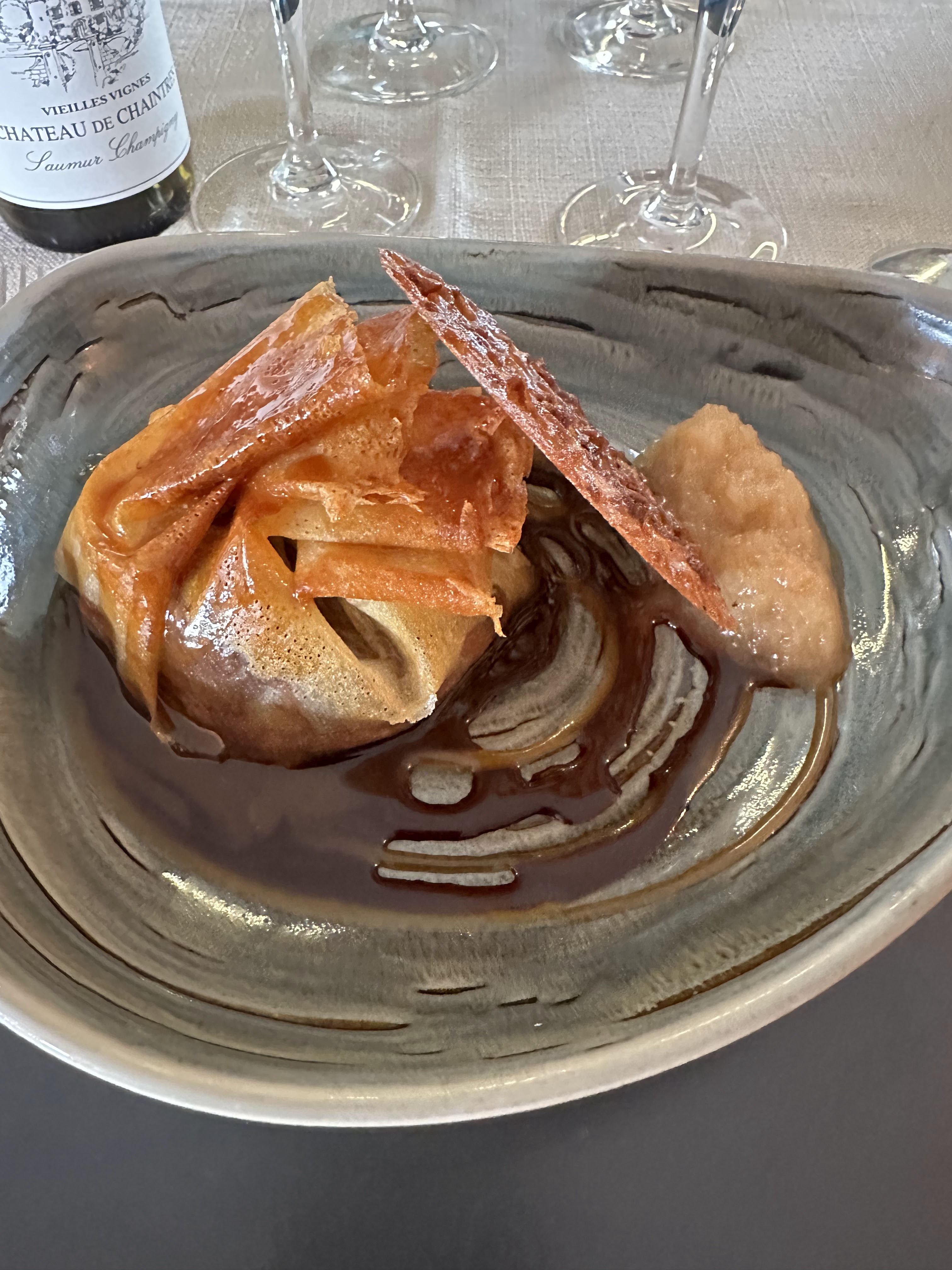 Nous avons eu ici un repas absolument délicieux, l'un de nos meilleurs en France. Tout était juste parfait ! Nous nous sommes assis sur la terrasse donnant sur la jolie petite place de la ville.