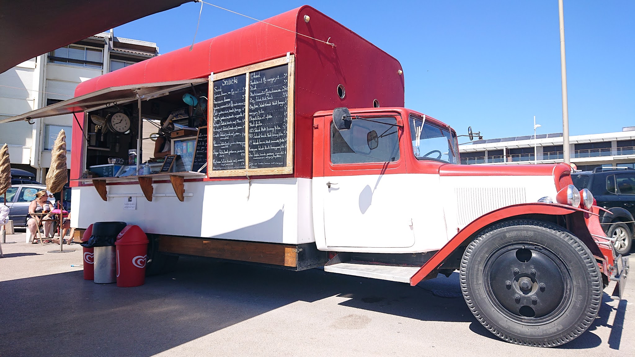 Petit food truck pour manger un bout sur le pouce avant d aller s allonger sur la plage. Sandwichs chauds ou froids bien garnis et serveur agréable et professionnel