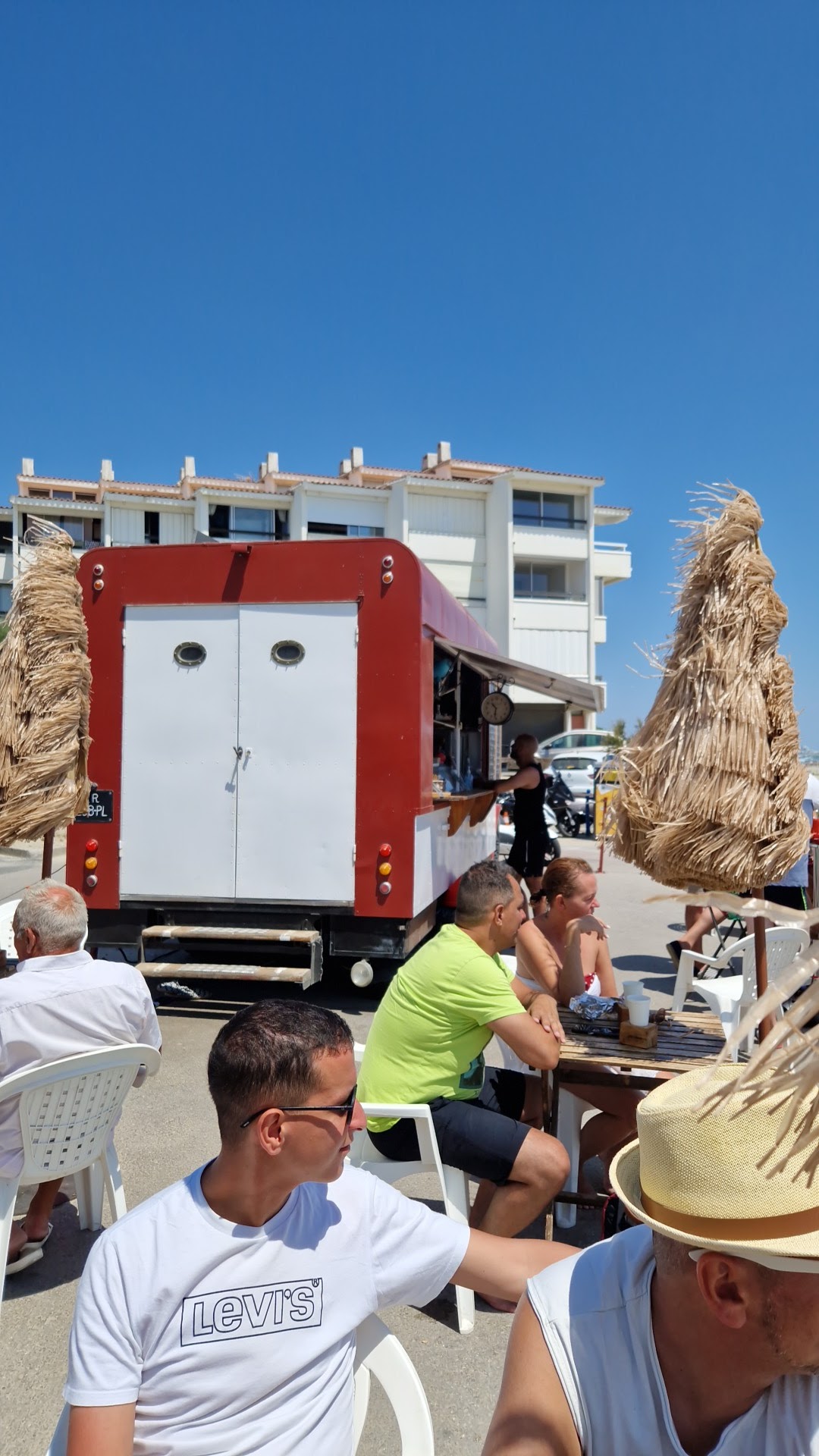 Un food-truck au bord de la page excellent ! C’est un food truck comme on aimerait en voir souvent. C’est propre !!!, idéalement situé, pas cher et fort sympathique. Il y a de l’espace, avec une vue imprenable sur la mer magnifique qui s’ouvre devant le camion. Les patrons sont souriants, avenants et très commerciaux, ont sent qu’ils disposent d’un profond sens du service bien fait ! Je suis très rigoureux croyez-moi quand ça ne va pas je n’hésite pas à l’écrire mais là … Je suis assez content, ça a beau être un « restaurant » de plage, c’est bien mieux que les autres restaurants en dur de la côte… Merci pour cette belle journée …