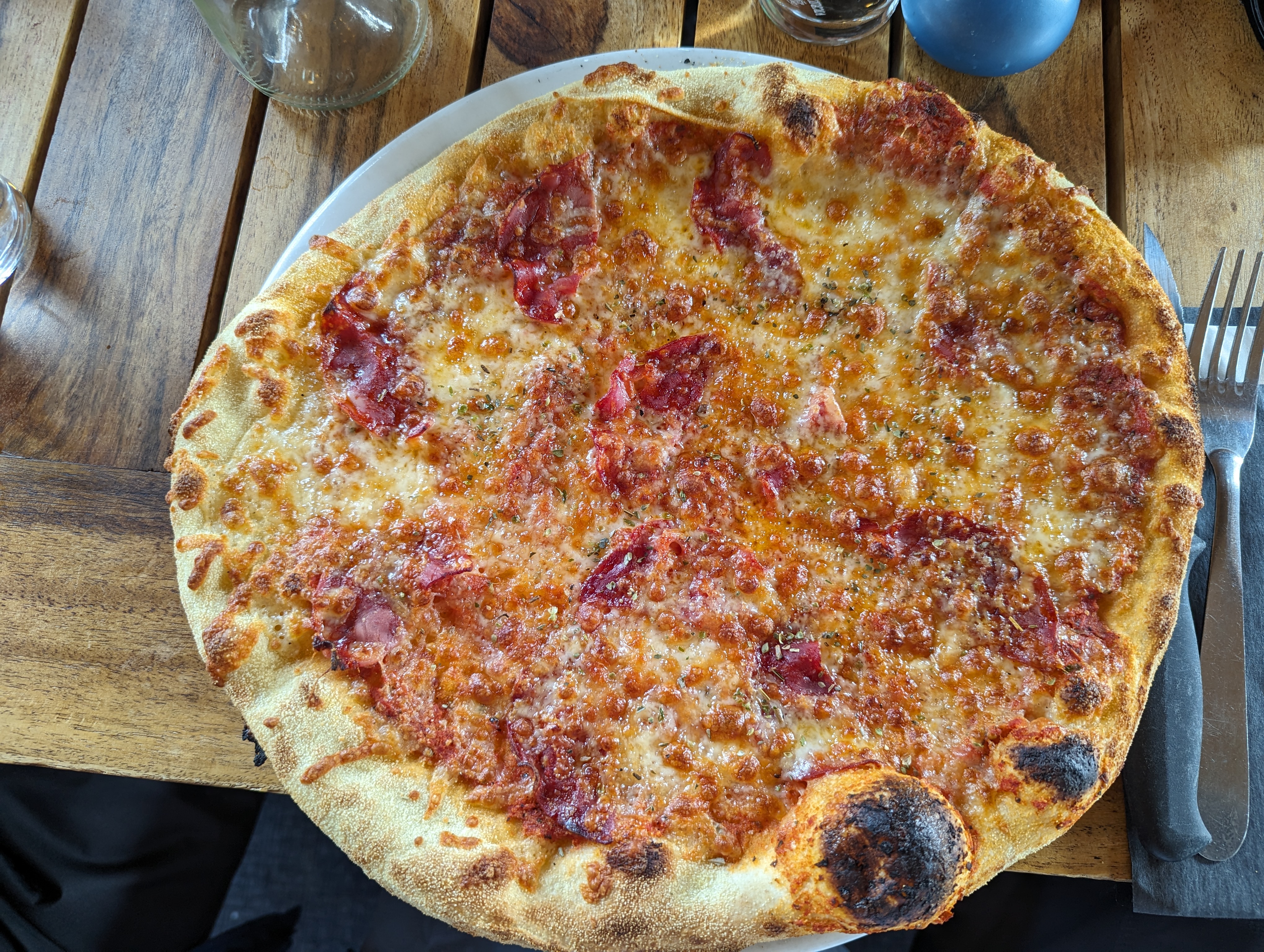 Très bonnes pizzas mais très cher Serveurs très sympas