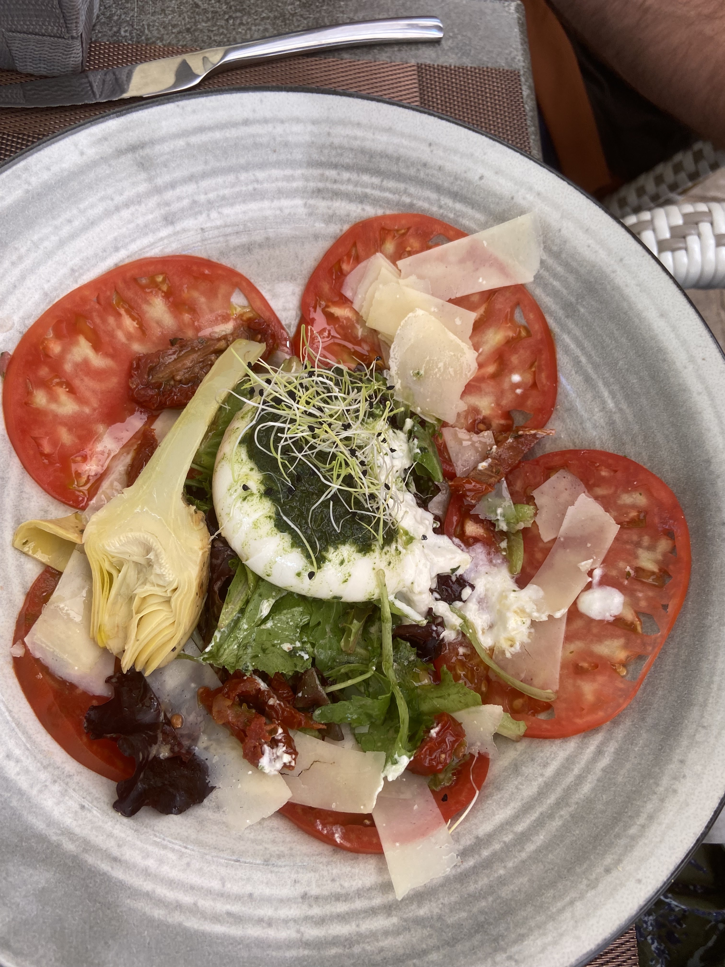 17 euros 50 pour une toute petite salade rien dans l'assiette c'est abusé et puis la salade niçoise avec des concombres c'est une honte regarder la recette avant de la mettre sur la carte à fuir l'été attrape touriste