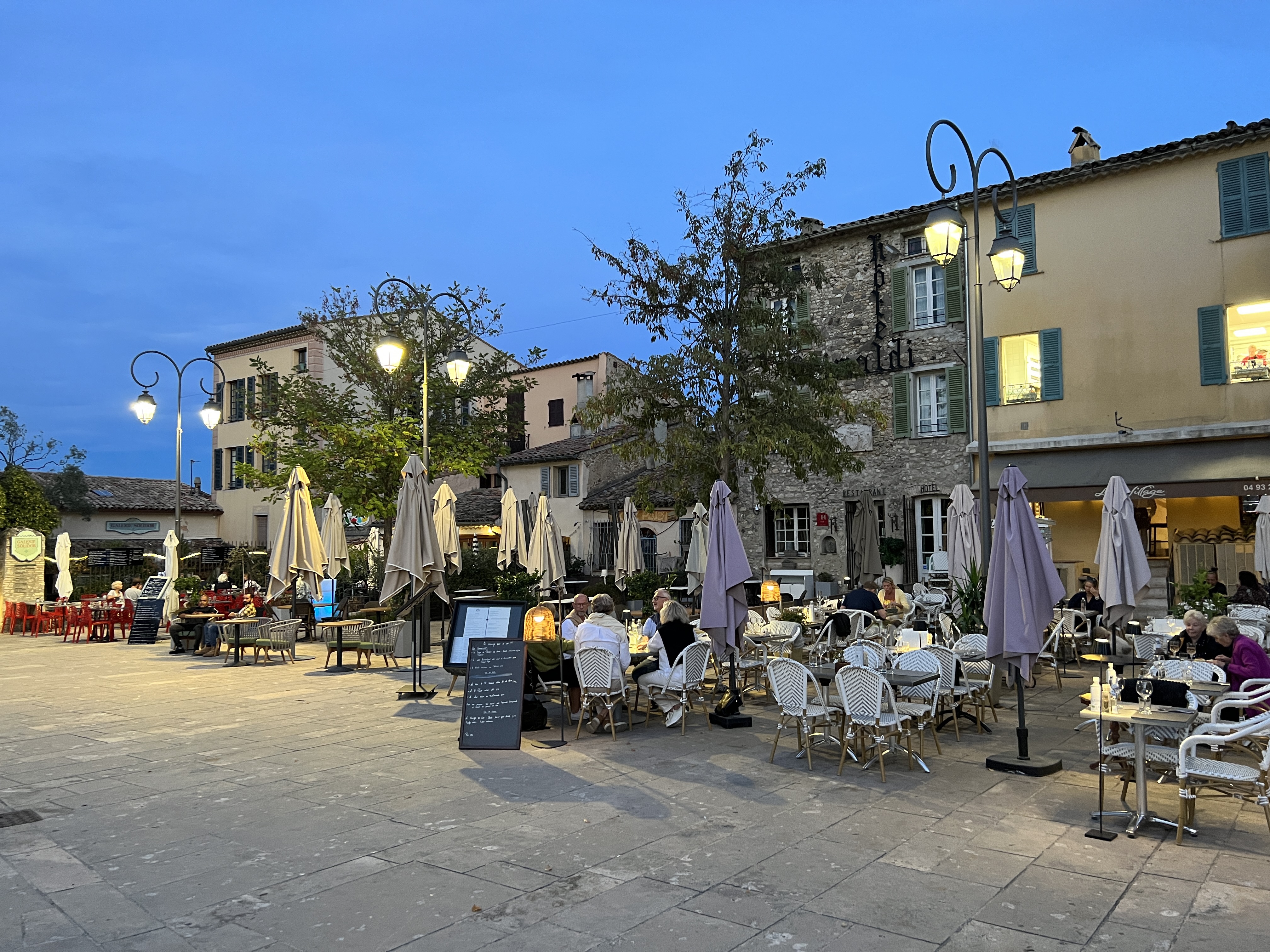 Restaurant Le Village dans le Haut de Cagnes, c'est un restaurant magnifiquement situé sur la place supérieure du Haut de Cagnes. Ils servent une excellente cuisine, il y a un bon choix de cocktails, de boissons et de desserts. Nous venons tous les soirs pendant trois jours et tout le personnel était très gentil et serviable à chaque visite. Nous espérons revenir dîner au Village.