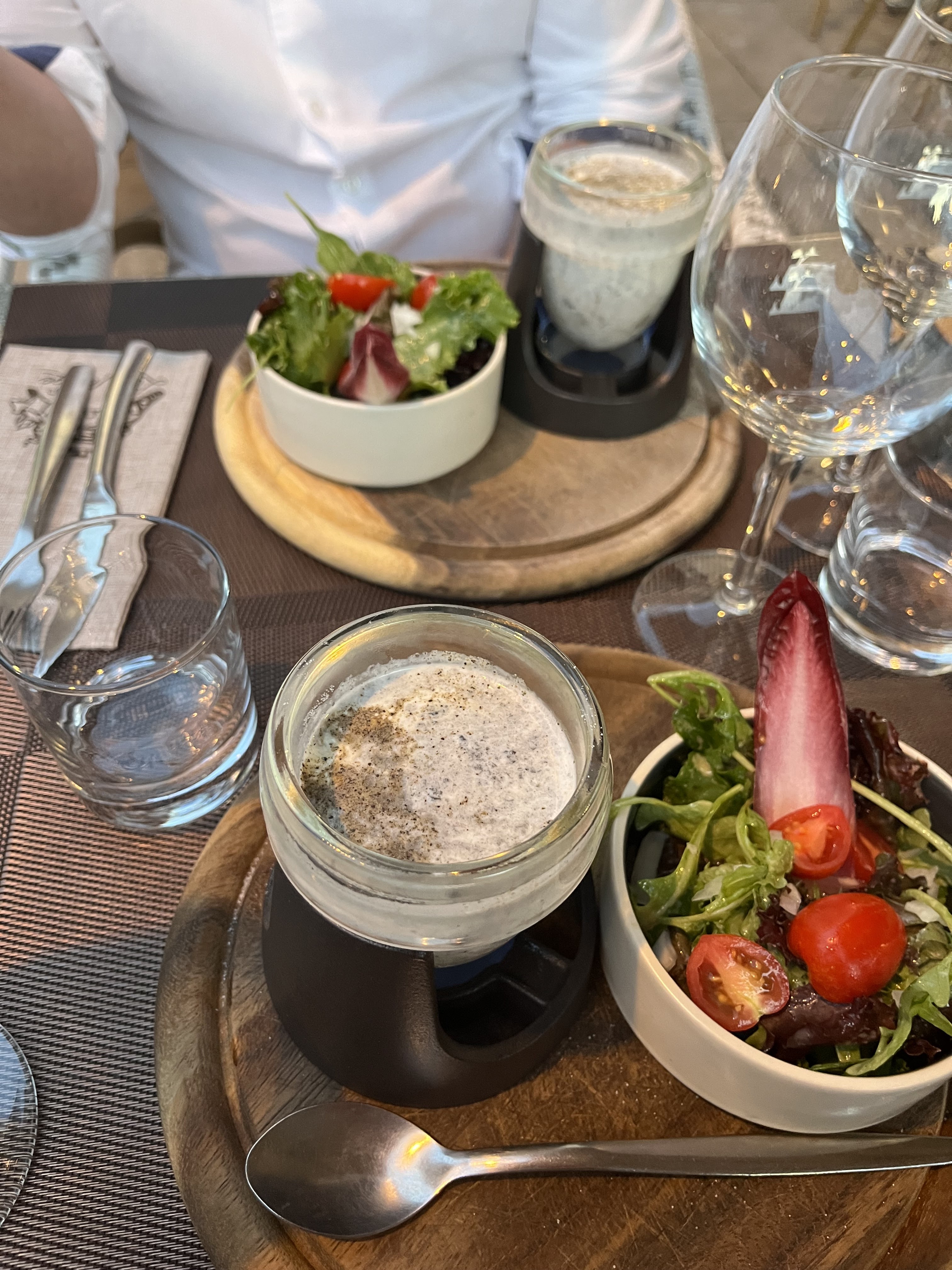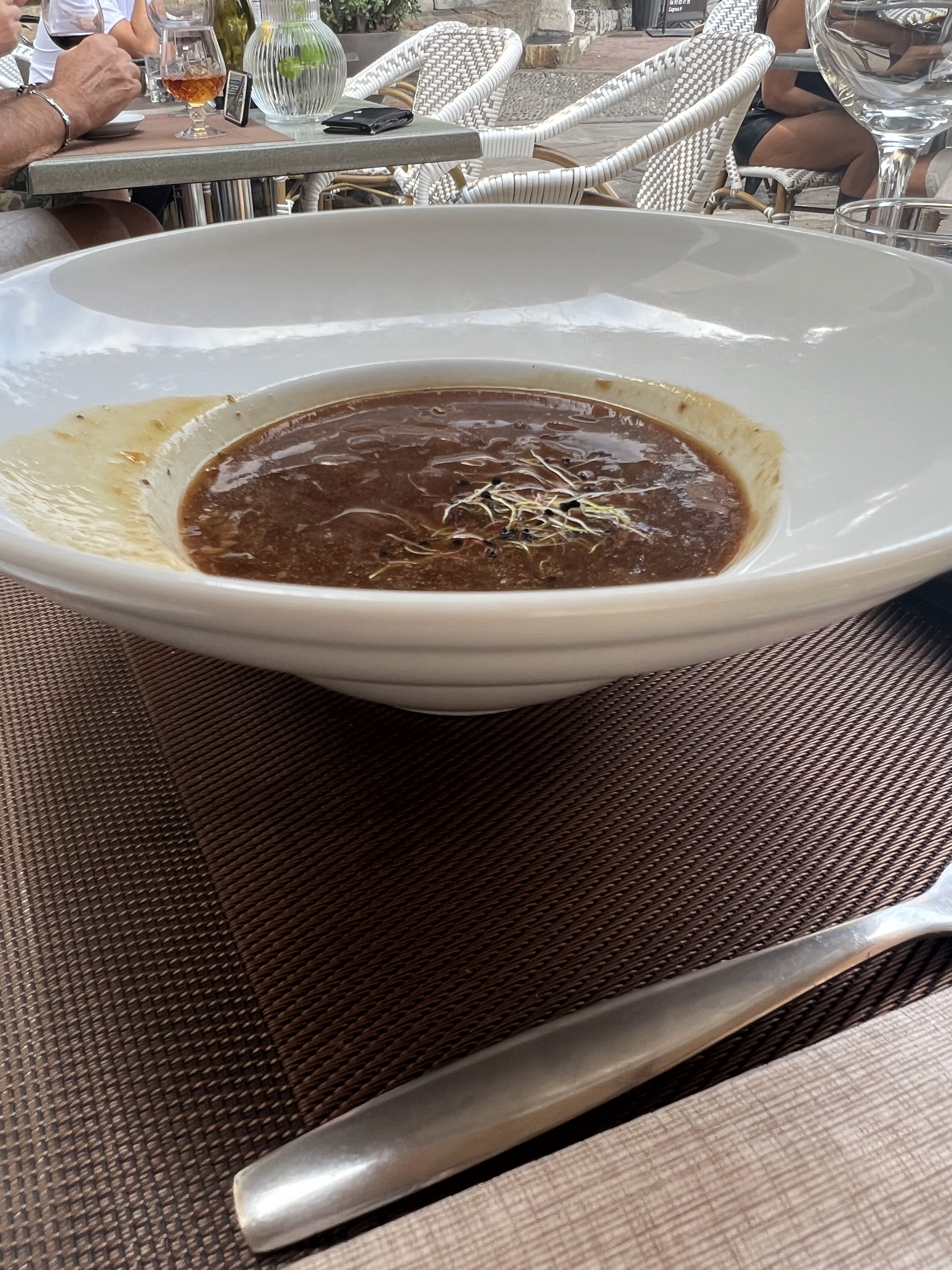 Très décevant .certe il fait chaud mais quand on vous sert une tranche de foie gras que bientôt vous pouvez boire à la paille tellement'il est liquide (septique sur les règles d'hygiène) la serveuse qui ne fait que de se plaindre (gros manque de professionalisme) ça ne vous donne pas du tout envie d'y retourner.