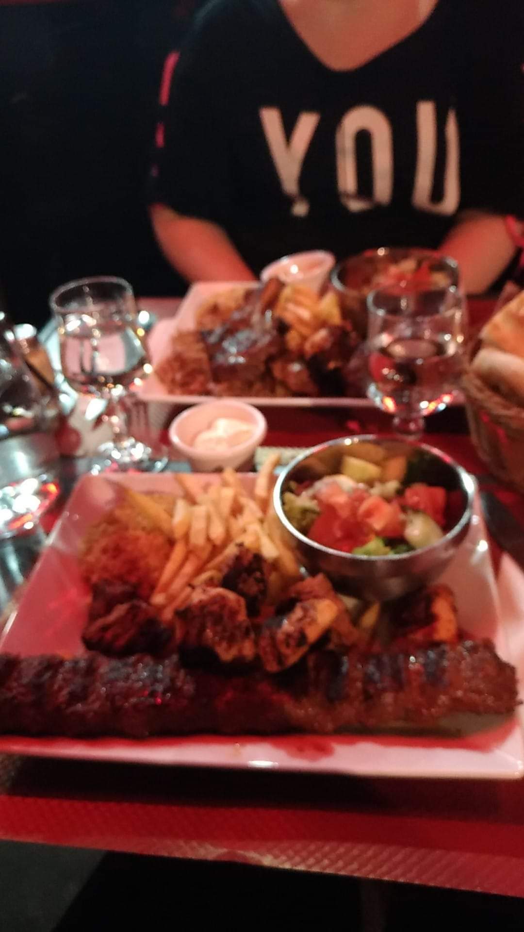 Les personnelles sont très gentils surtout avec les enfants, mais …. Le plat est normal pas de gout surprise quoi c’est le goût de chez tous les turcs, la brochette quantité bien mais trop fort le goût en fin j’ai pas pu terminé, le kunefa est bon (y) voila bonne nuit