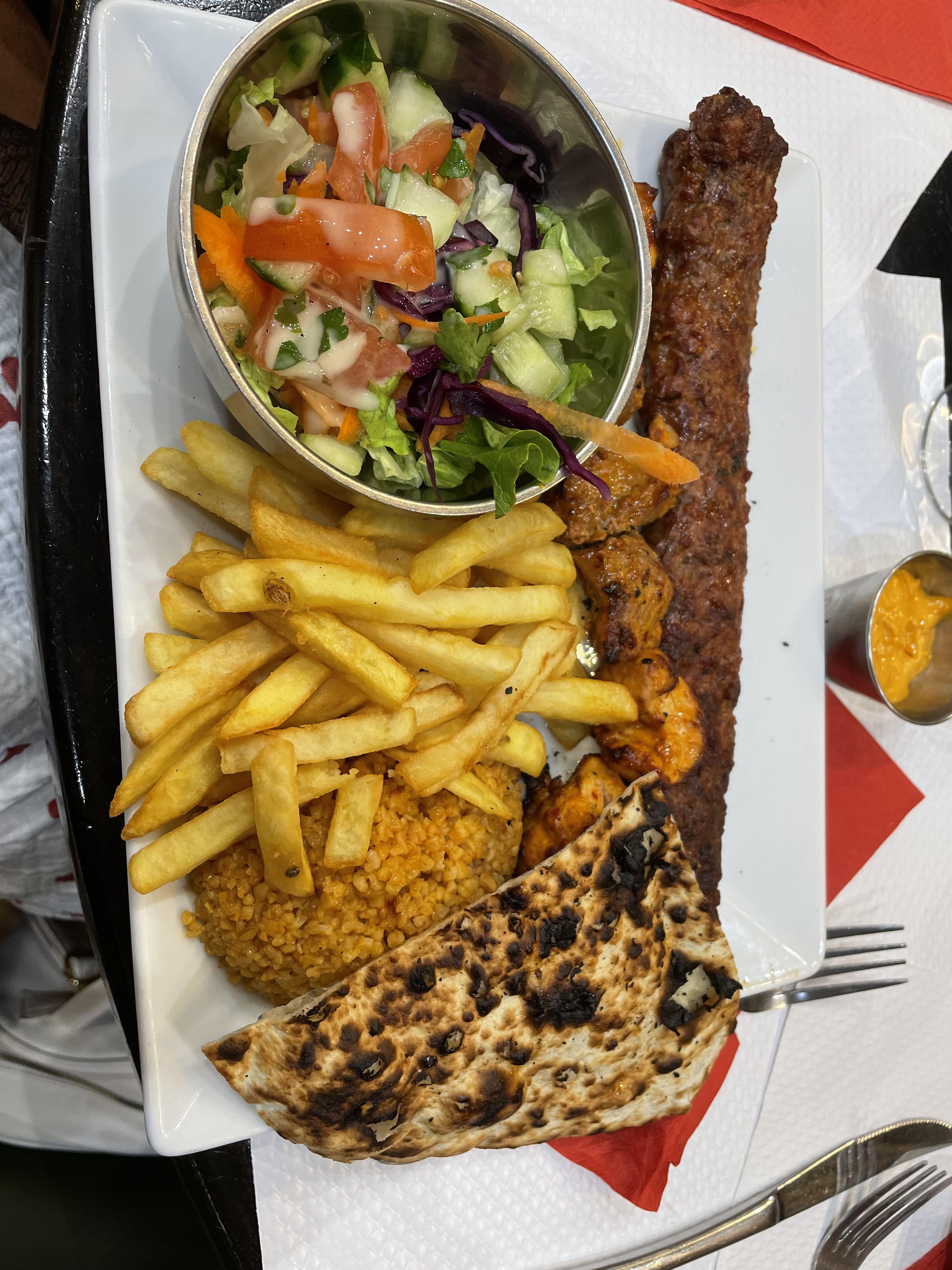 Franchement, the best kebab restaurant de tout IDF, le service au top, les plats sont généreux et en plus c'est très délicieux et unique, le pain est chaud et fait maison, on nous a même offert du thé, les prix sont responsables. Je recommande +100%