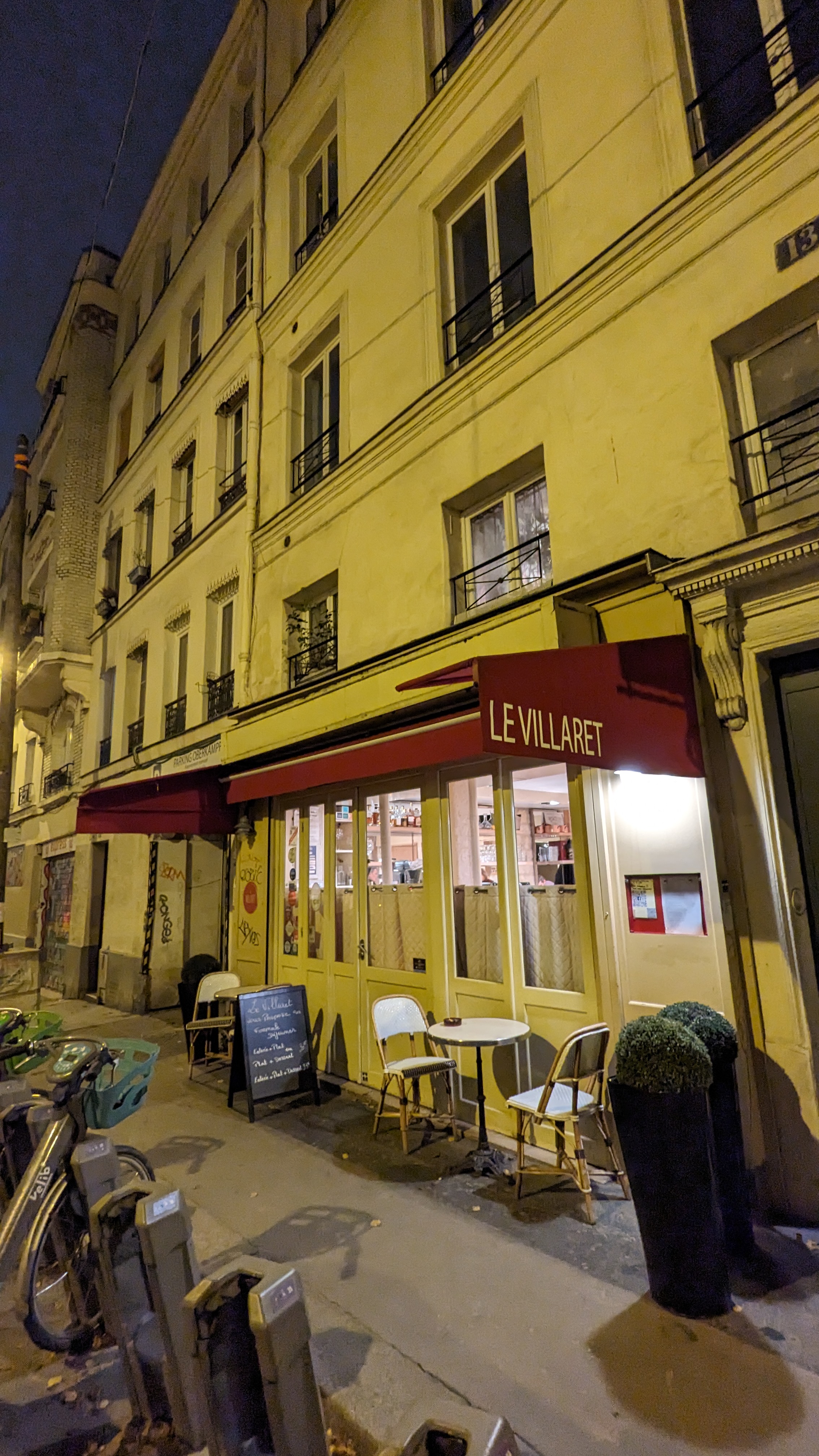Il y a des endroits où l'on passe un si bon moment qu'on est obligé de laisser un avis. Le Villaret était un tel endroit où je célébrais ma nouvelle offre d'emploi avec mes amis. Les intérieurs ont une apparence très positive et accueillante. C'est encore mieux lorsque les patrons vous accueillent avec leur charme et leur chaleur, assez rares dans les restaurants parisiens. La nourriture parle d'elle-même et la sélection de vins et digestifs est exquise et vaste. C'est un de ces endroits où vous reviendrez sans cesse.