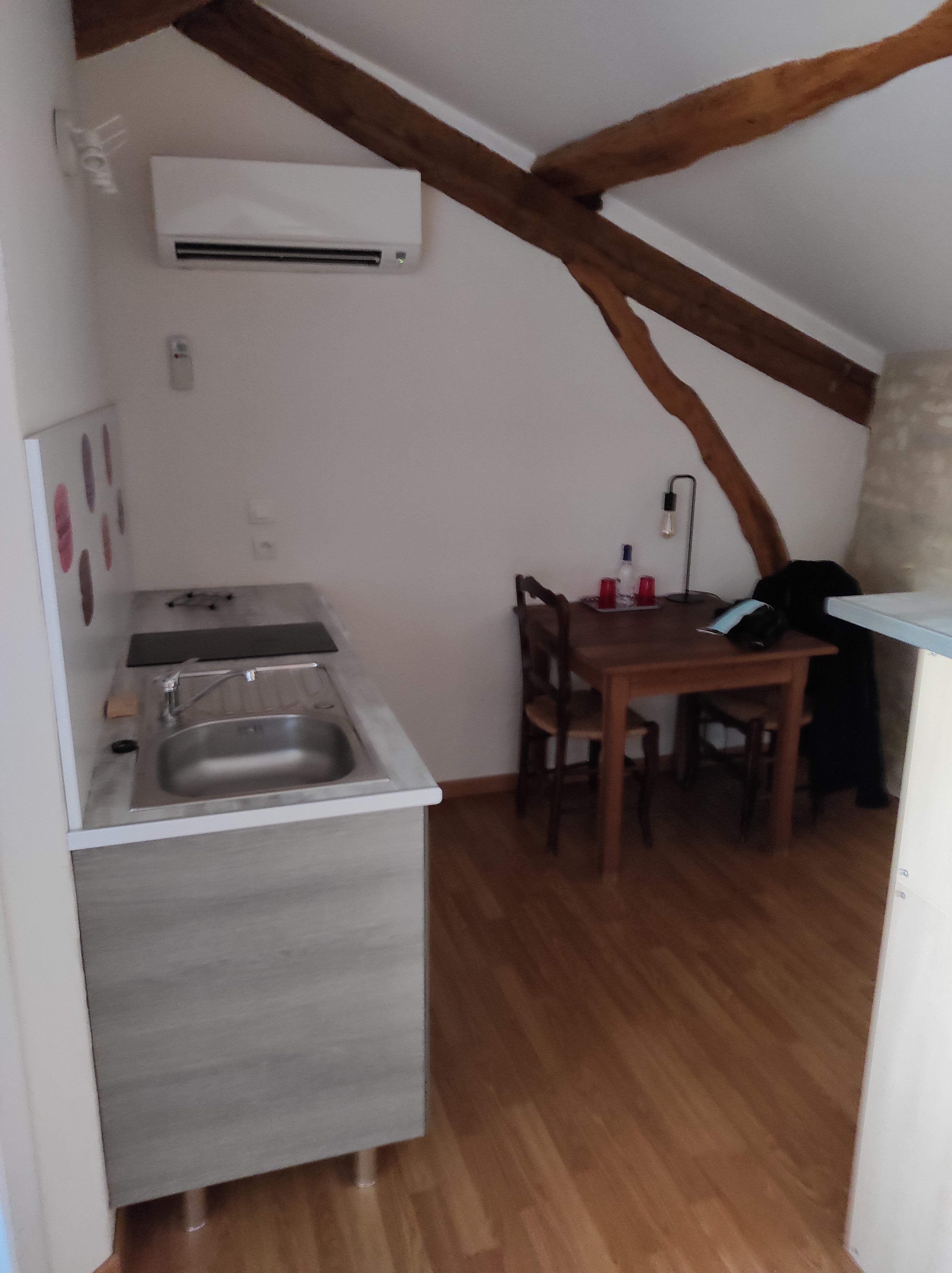 Super weekend ! accueil très chaleureux et convivial, chambre spacieuse et agencée avec goût, comprenant un espace kitchenette, une salle d'eau, et un lit double et un lit simple. Très lumineuse, poutre apparente, placards et armoire , le tout très fonctionnel !! Félicitations !! A recommander vivement !! Possibilité de service de repas en plateau!! Excellent !! Très belle découverte ! Merci.