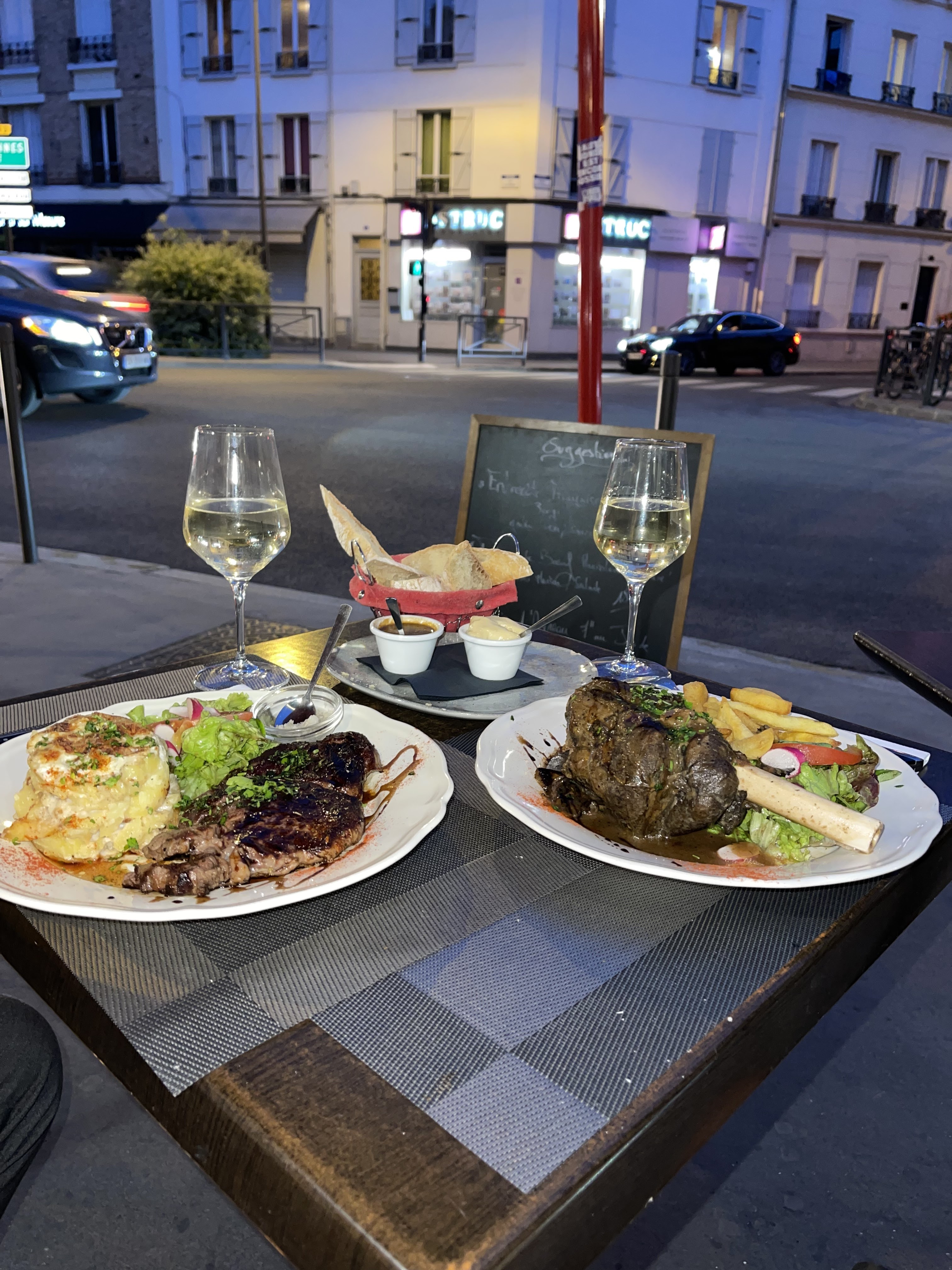 J'ai eu une super expérience ici. J'aime la clientèle et le caractère grandiloquent du propriétaire. Elle est vraiment sympa et définit l'endroit comme le font les bons restaurants locaux. C'est parfait pour un voyageur seul comme moi. Je reviendrai certainement dans cet endroit quand je serai à Paris. Il y avait une entrecôte et un prosecco exceptionnels, vous devriez l'essayer.