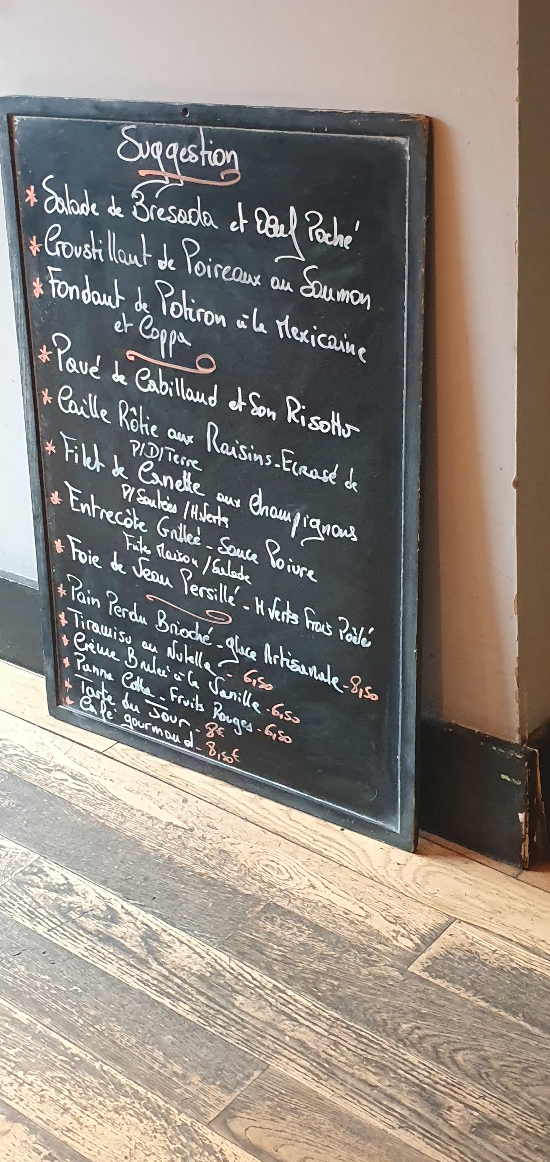 Alors que dire de cet établissement les mots me manque allez - y, courrez - y. Un accueil chaleureux, des tables confortables espacées, un choix de plats à l'ardoise abordables, ou le menu à midi. Du poisson ou de la viande fraîche et de qualité, moi j'ai opté pour les gambas aux petits légumes parfait, un air de vacances . Les vins sont de bonnes provenances au verre en pichet ou à la bouteille. Le Tiramisu café succulent . J'ai hâte de revenir.
