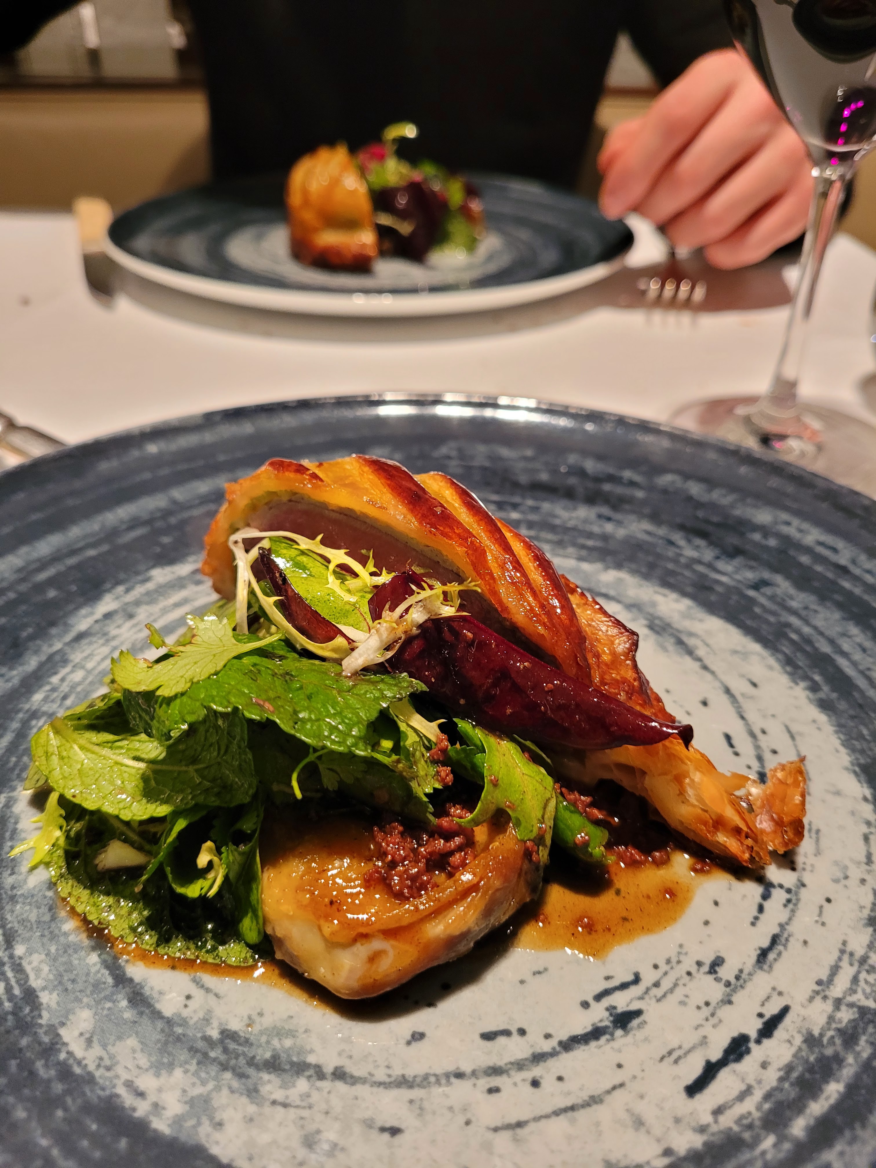 Nous avons pris le menu dégustation de 7 plats. Le tourteau en 1re entrée était très agréable, et cela s’est suivi jusqu’au pigeon. Le fromage n’était pas de notre goût, les desserts étaient corrects. Le service était gentil mais pas au niveau d’un 1* et pas satisfaisant au vu du prix.