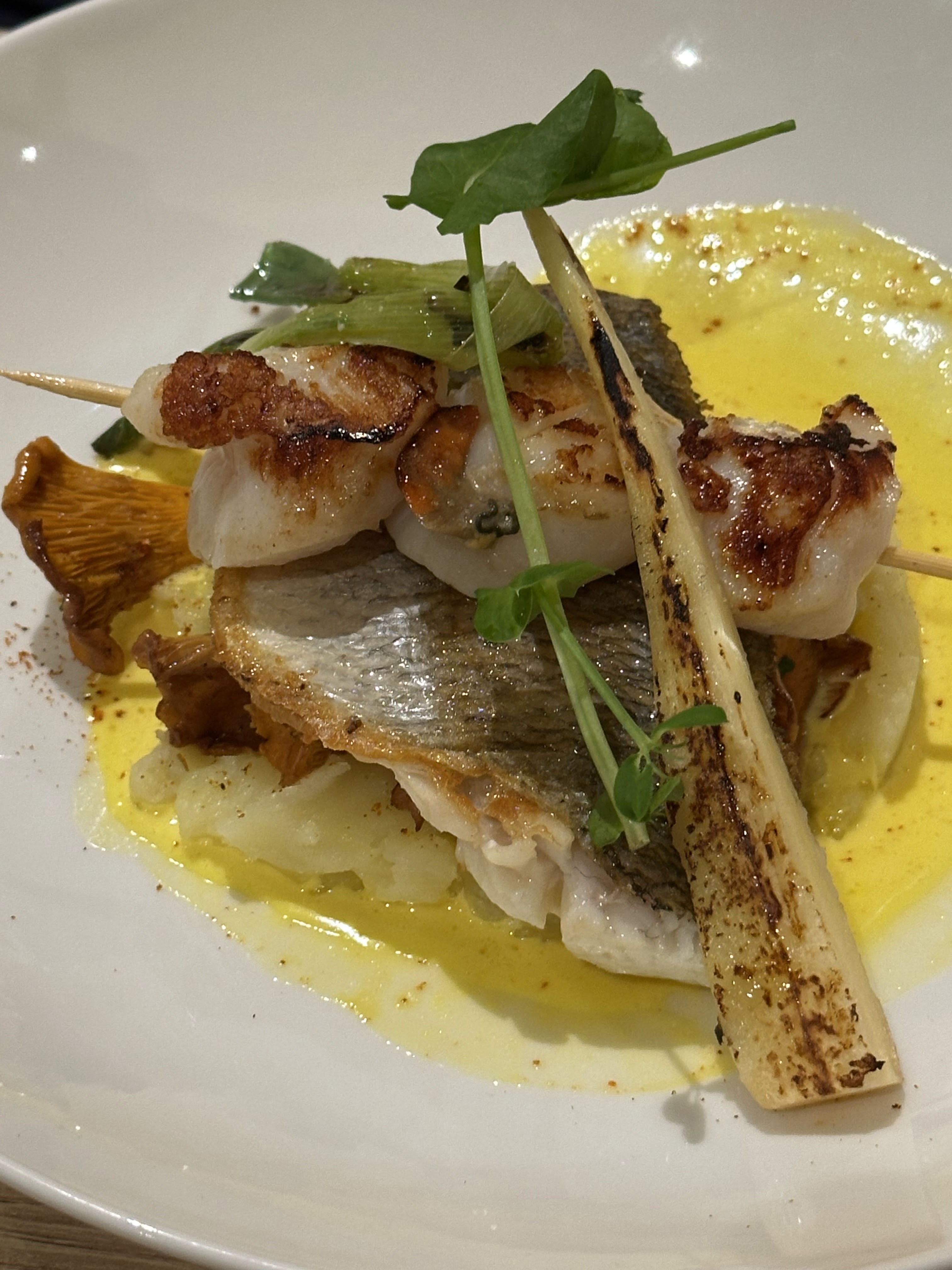 Un vrai moment de plaisir....les plats sont vraiments délicieux...la brochette de noix de St Jacques avec du bar de pêche servis avec des asperges sur un lit de purée...Ouah...Divin...