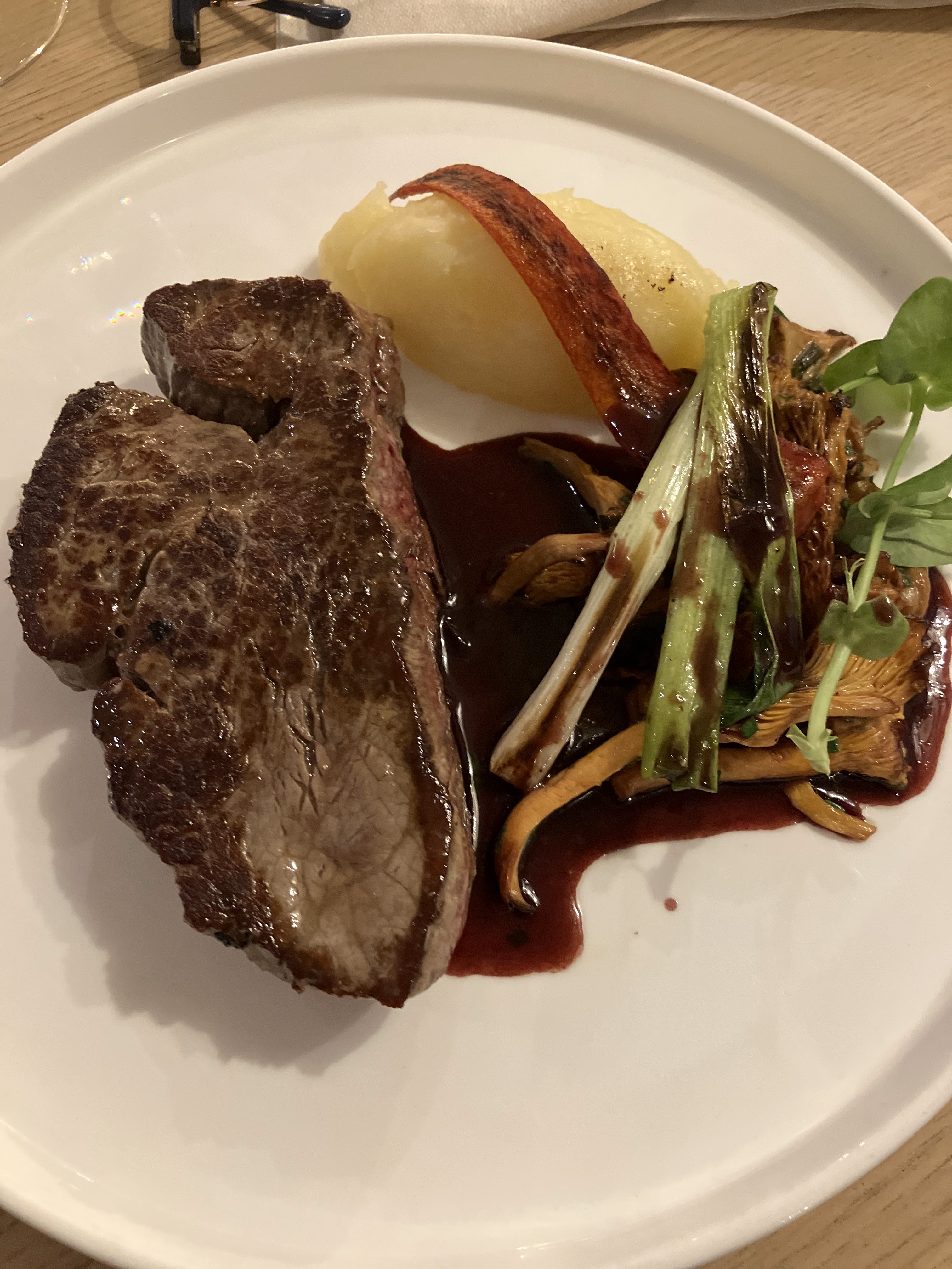 Parfait ! Nous avons regretté de ne pas avoir pris d'entrées ! Cuisson de la pièce de bœuf parfaite, dessert excellents. Meilleur que notre restaurant de la veille à la Corderie Royale...