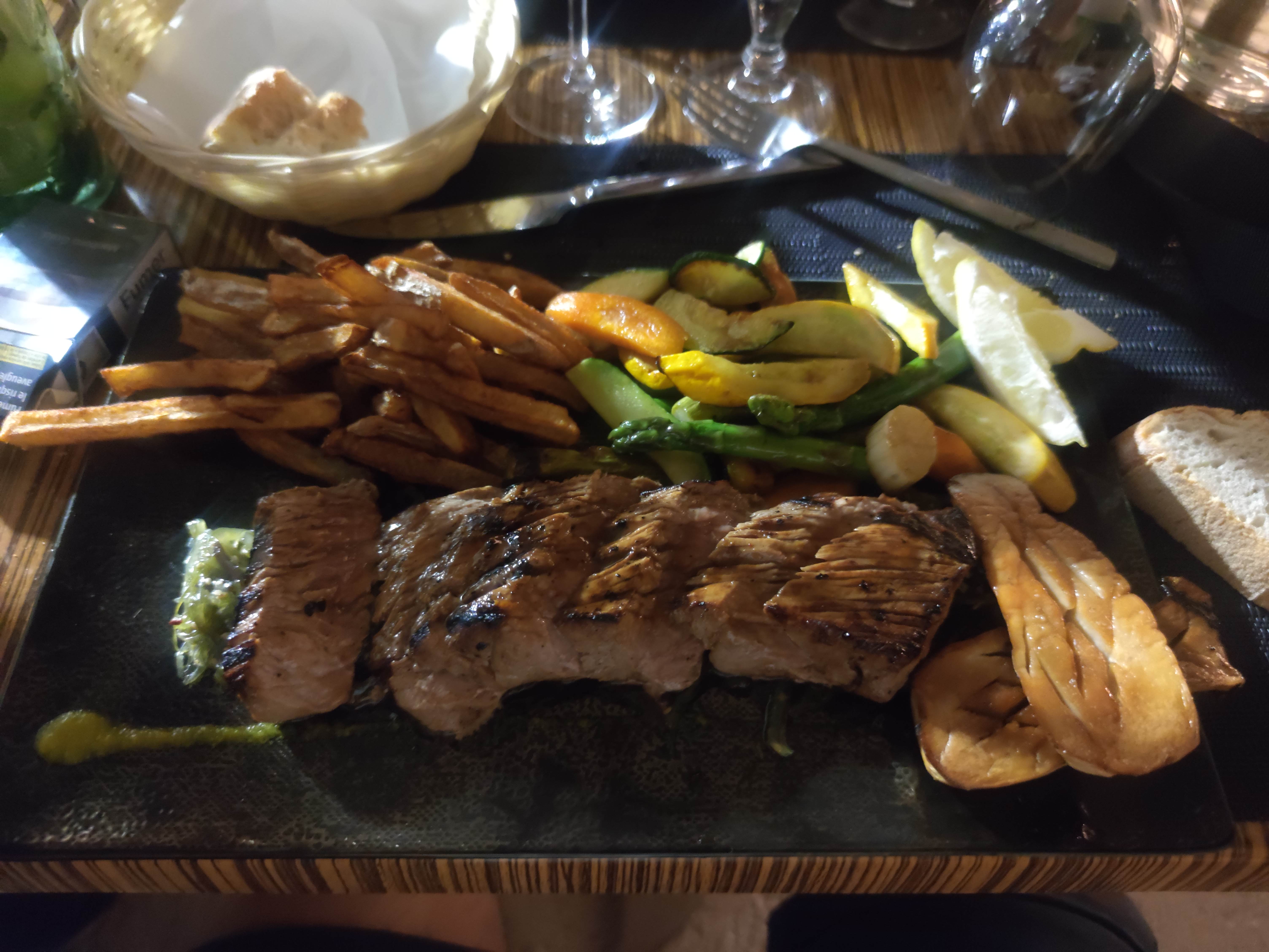 Restaurant très agréable, avec une petite terrasse devant et sur le côté , pour ceux qui aiment manger dehors... Le service est rapide, le personnel très accueillant , plutôt au petits soins avec nous ... Les grillades sont excellentes, cuisson parfaites , originalité dans le choix des brochettes , frites maison , légumes frais de saisons ... Excellent desserts ( salade de fruits , tarte choco banane, profiteroles géantes ... ) Je recommande !!!