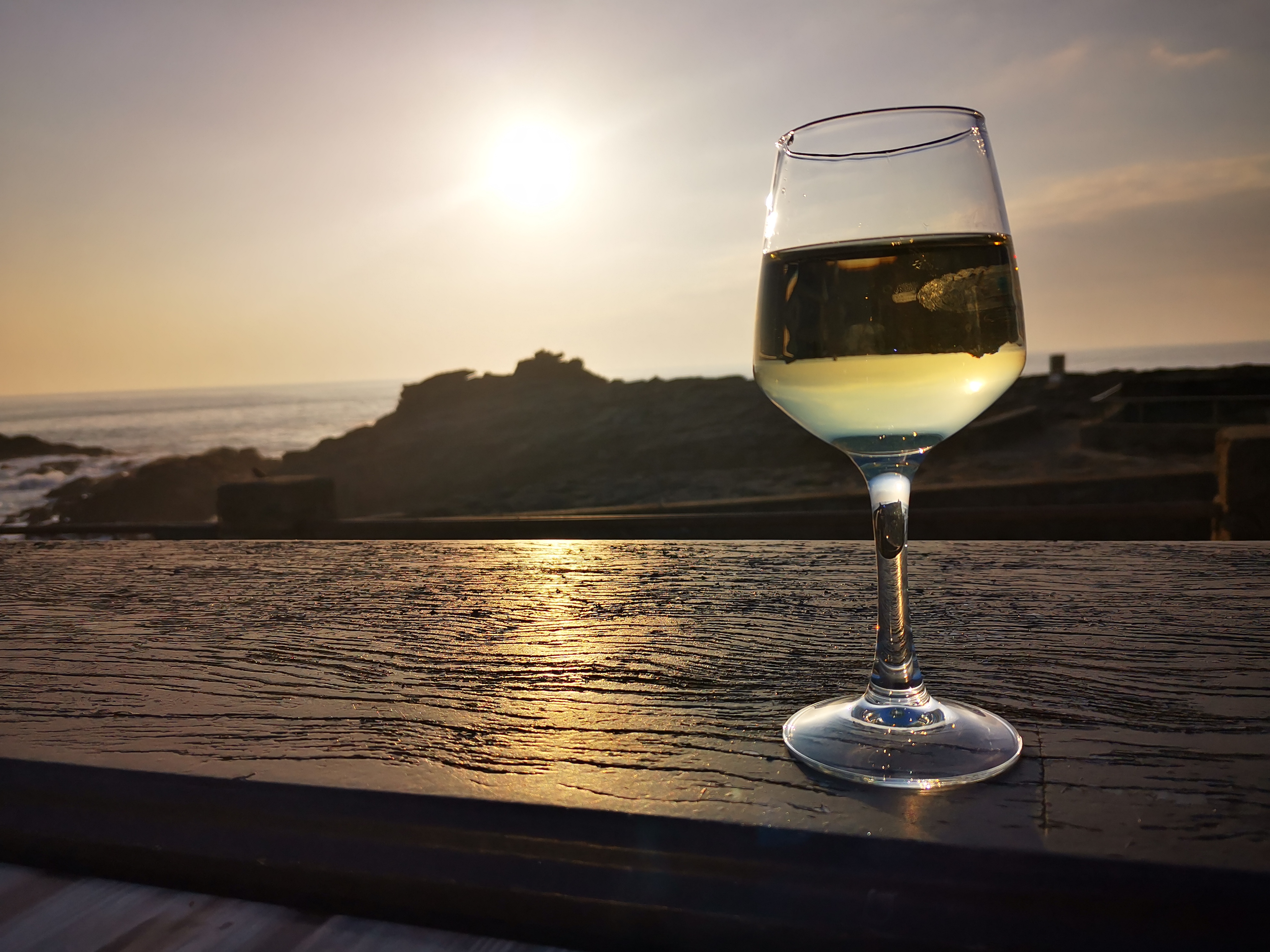 Boire un verre en face de la mer et de la côte sauvage. Le top.