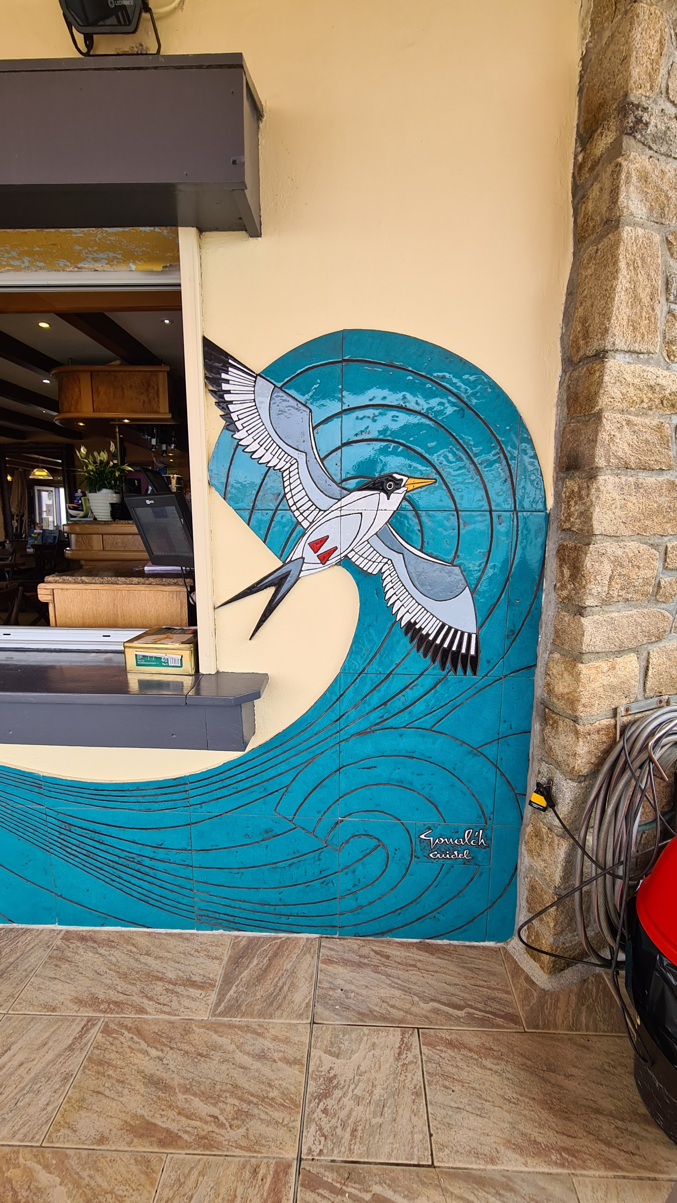 Joli endroit pour se désaltérer et pour manger,les prix sont très raisonnable.c était un ancien stockage de fruits de mer,a voir absolument .la fresque sur la devanture qui est en céramique est magnifique .
