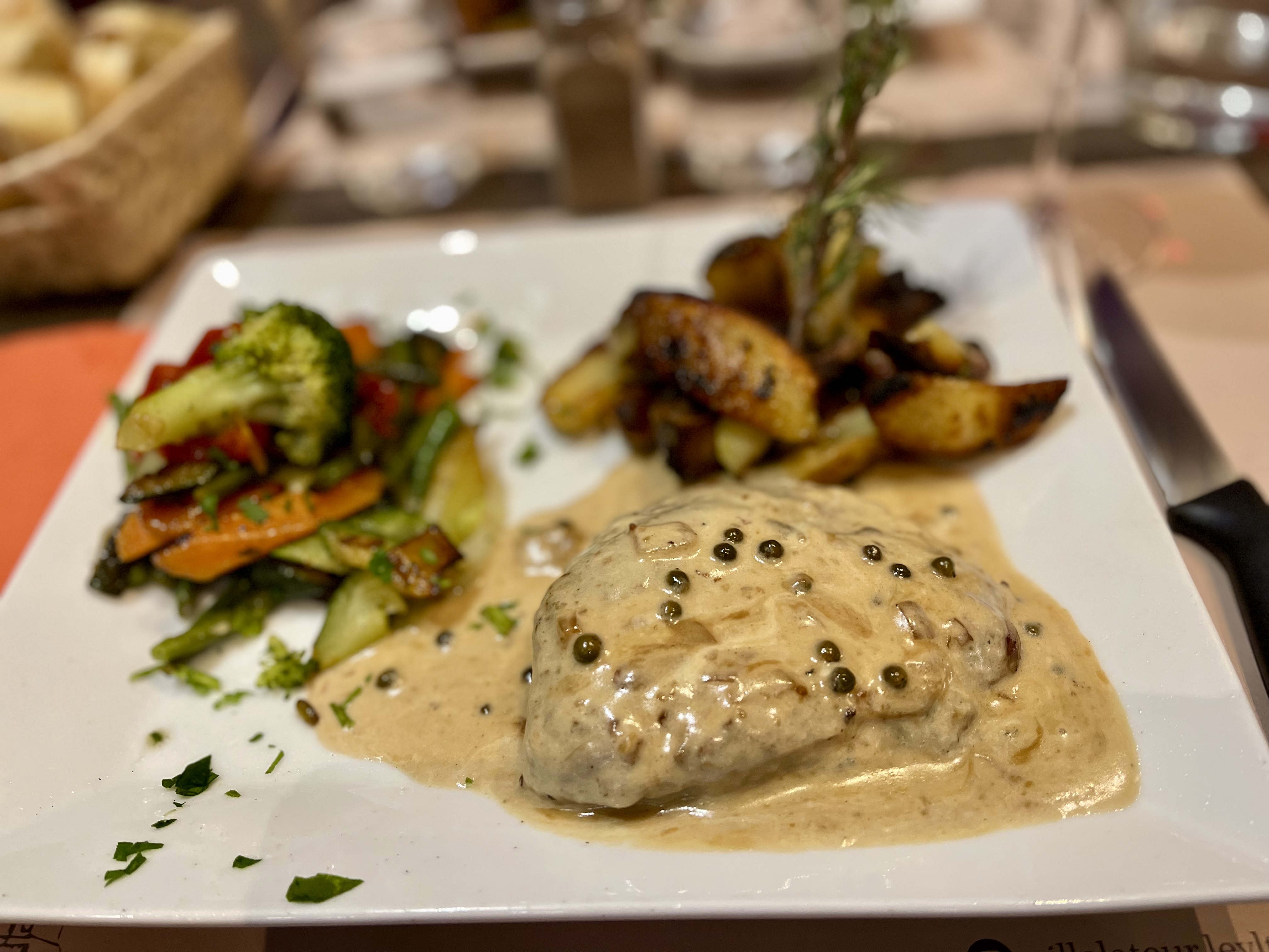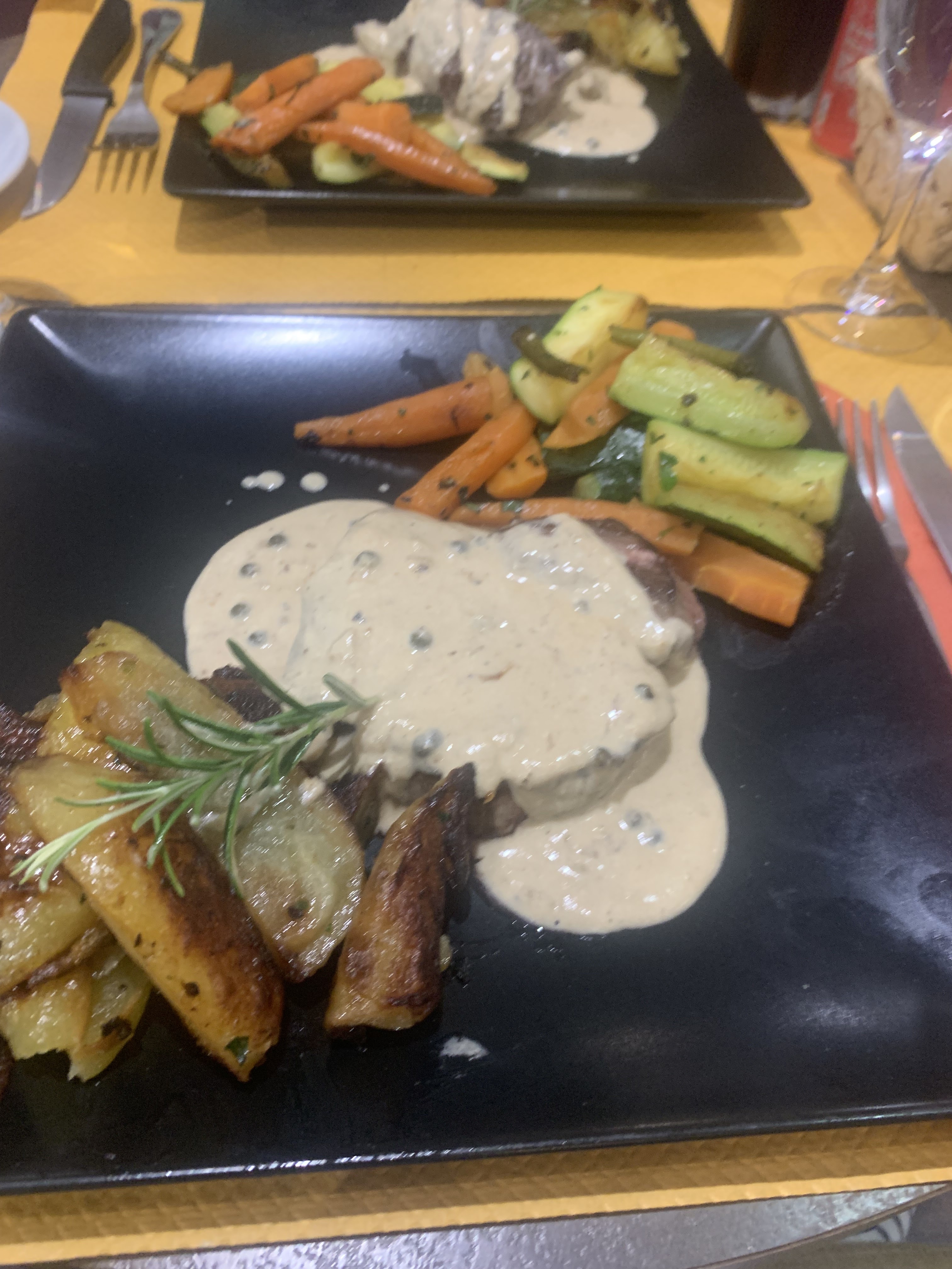 Le meilleur déjeuner des vacances ! La pièce de viande saignante est fortement recommandée.
