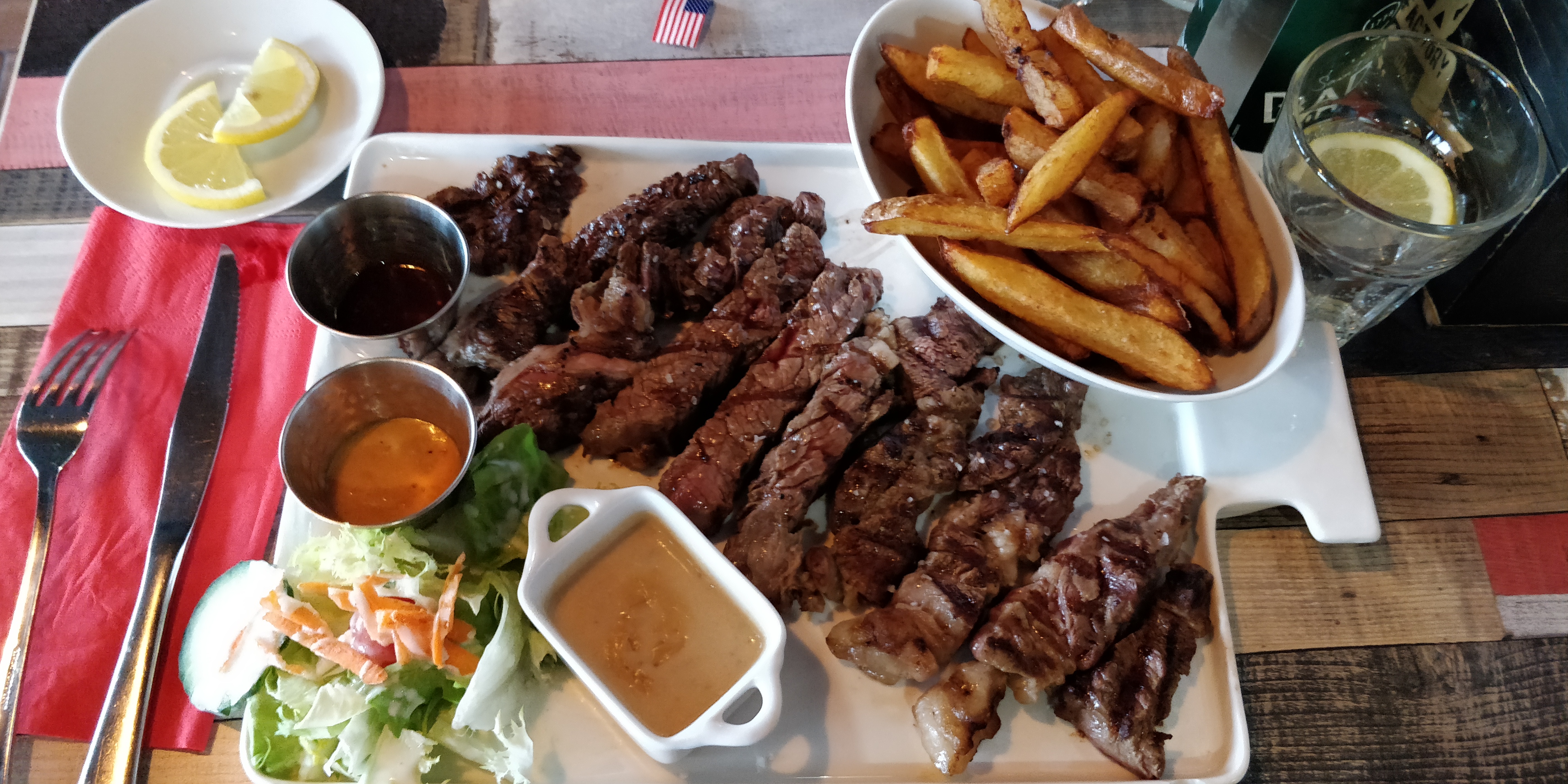 Alors comment vous dire que ce restaurant est un délice pour les papilles. La viande est tendre à souhait, frites maison avec différentes sauces, portions très généreuse que demander de plus. Un sans faute de la décoration, jusqu'au service et conseille du serveur. Je vous le recommande vraiment si vous passer à la plaine st Denis.