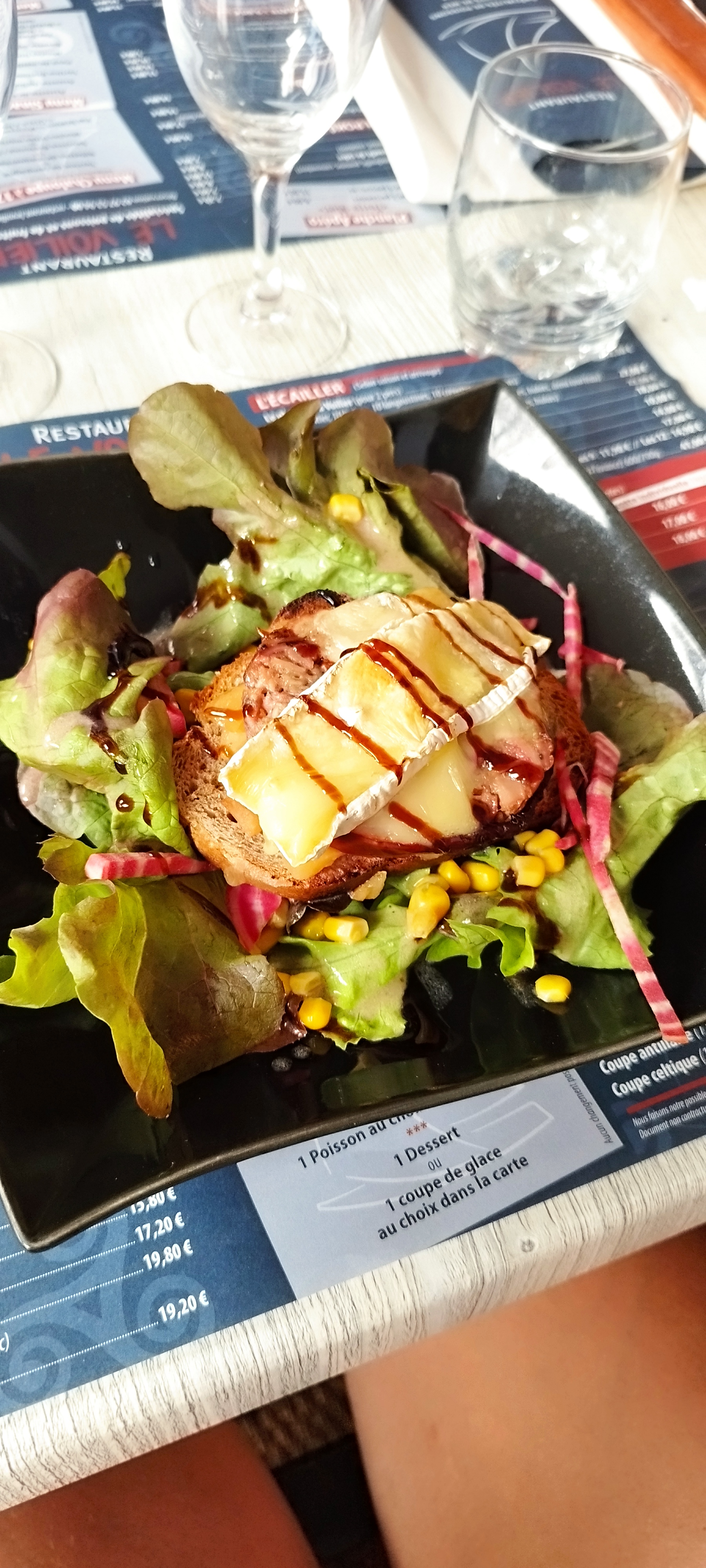 Joli décor, service impec. Déçus des quantités. La crise sans doute 😁une mini mini crème brûlée a 6€ épaisseur 3 mm. Cela fait cher la cuillère de lait ! Le reste était ok