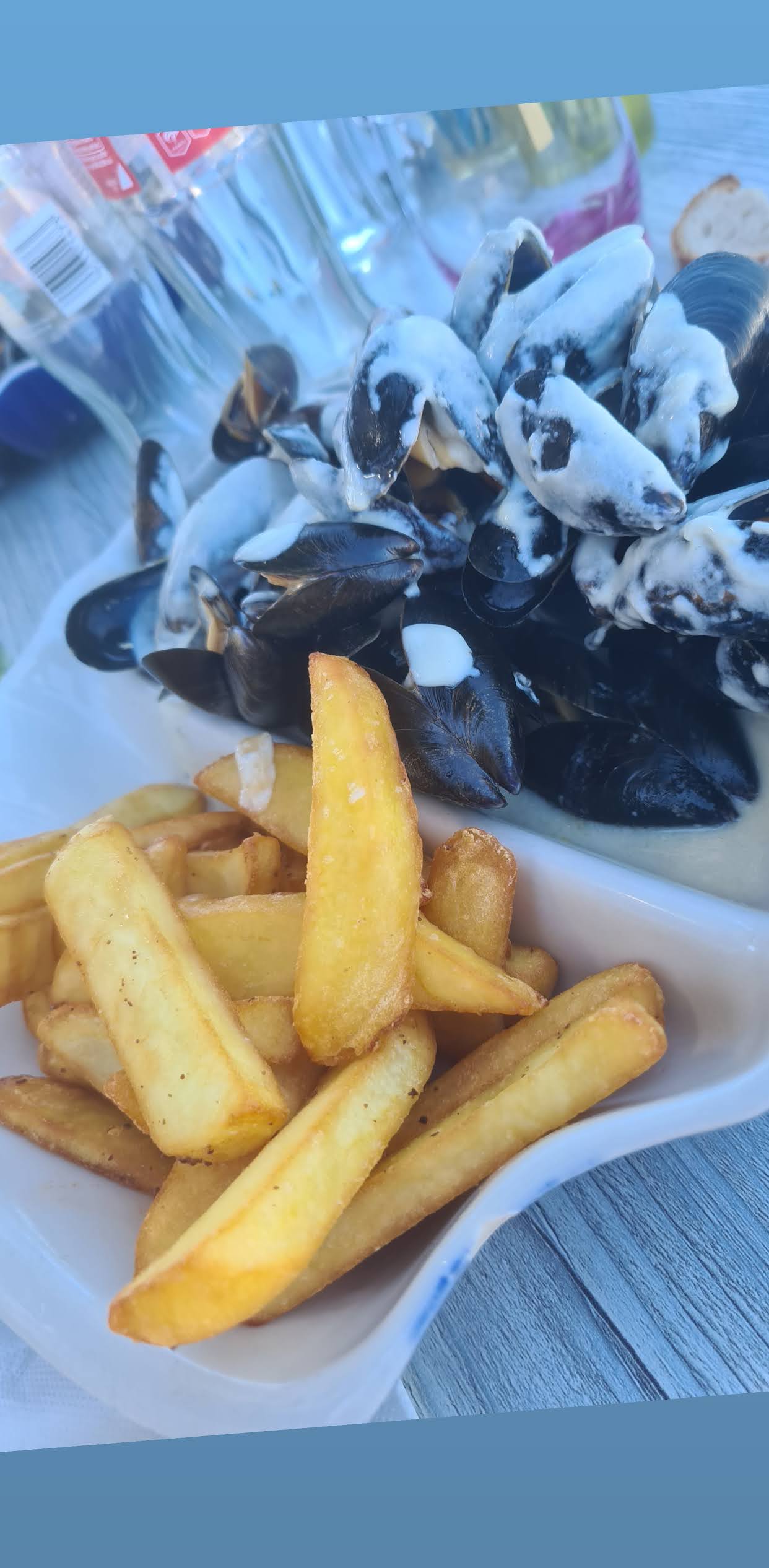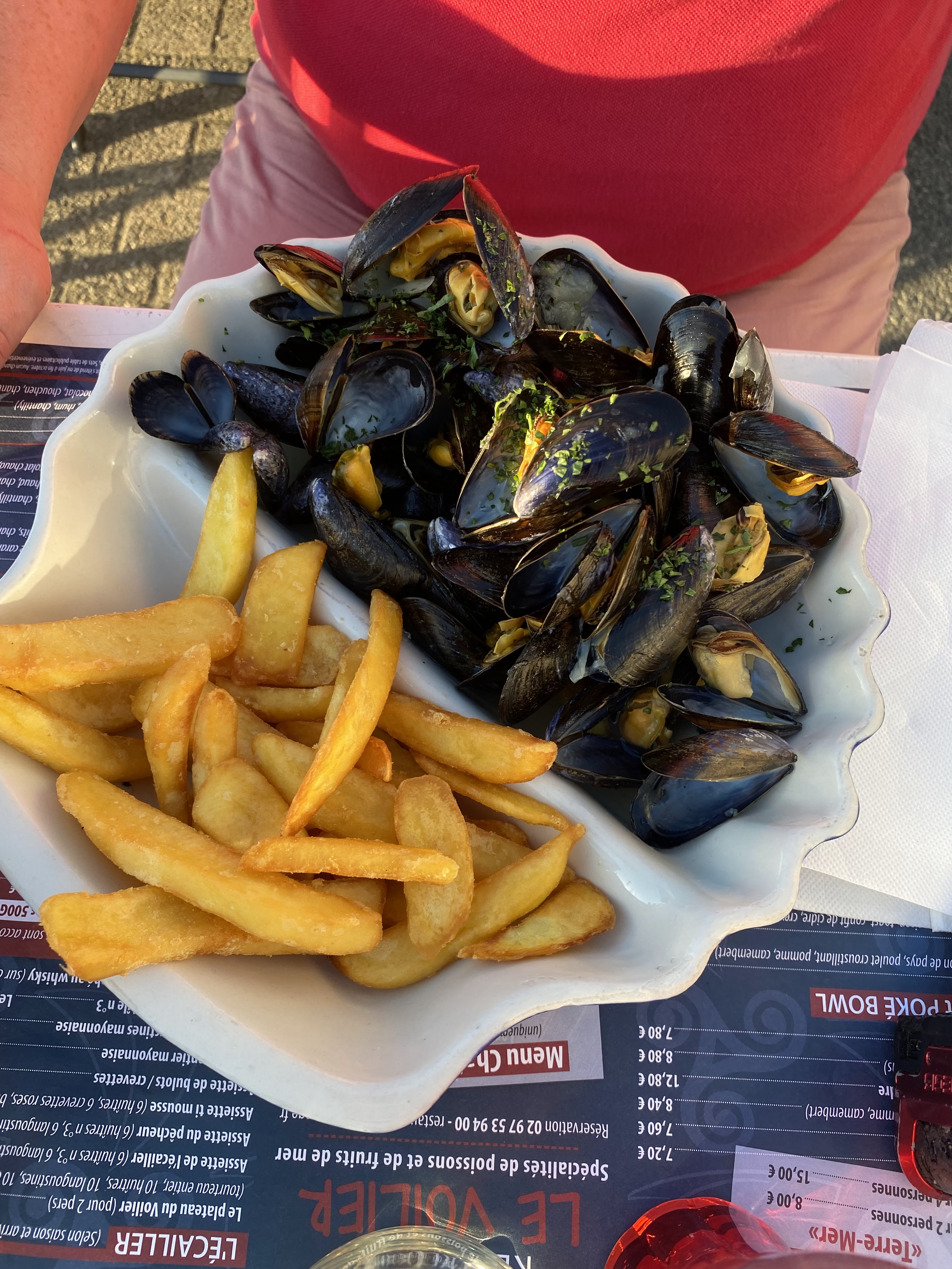 Repas simple et bon. Moules belles et bonnes, frites maison extra. Je recommande.