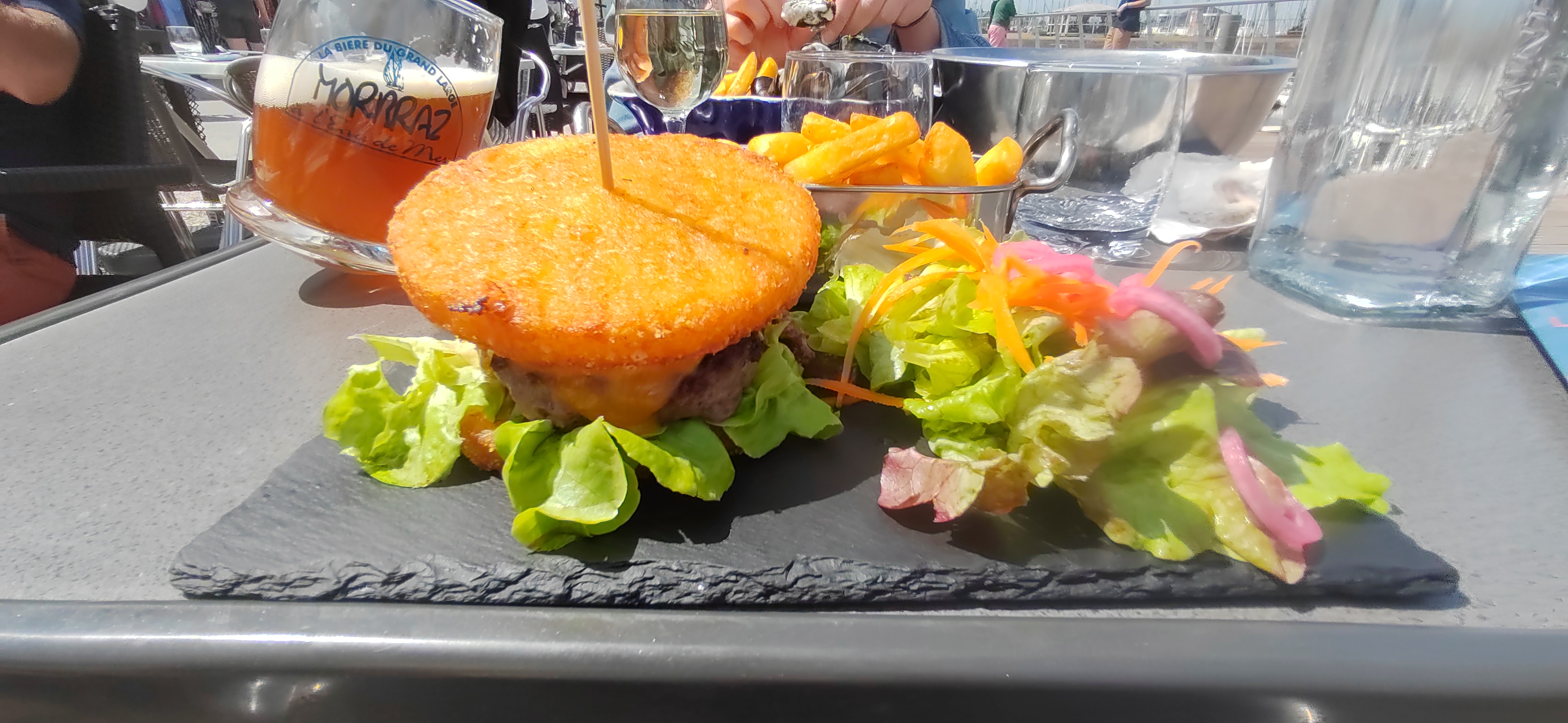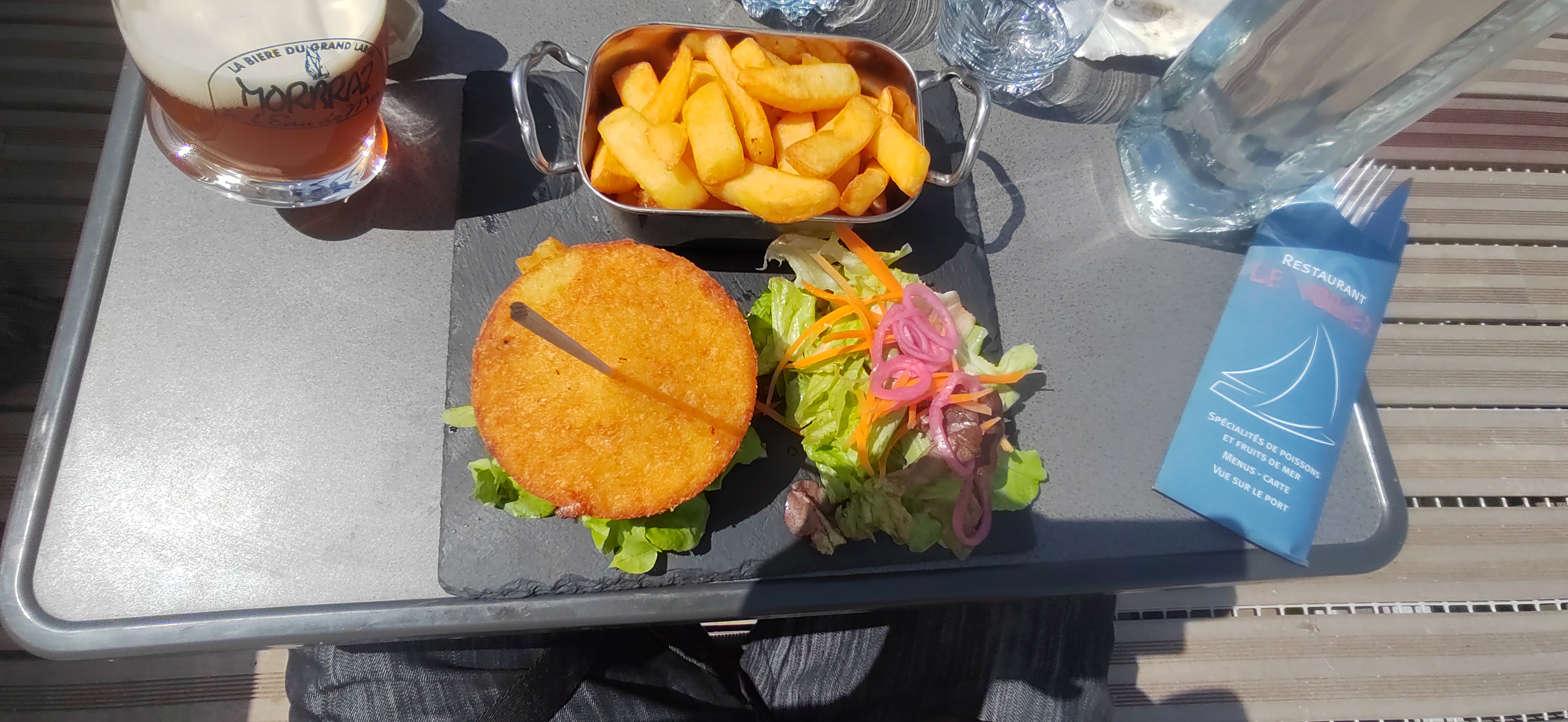 Le voiler, restaurant bien sympathique mais c'était long à servir. J'ai pris un potatoes burger, c'était bien goûtu. C'était à Arzon.