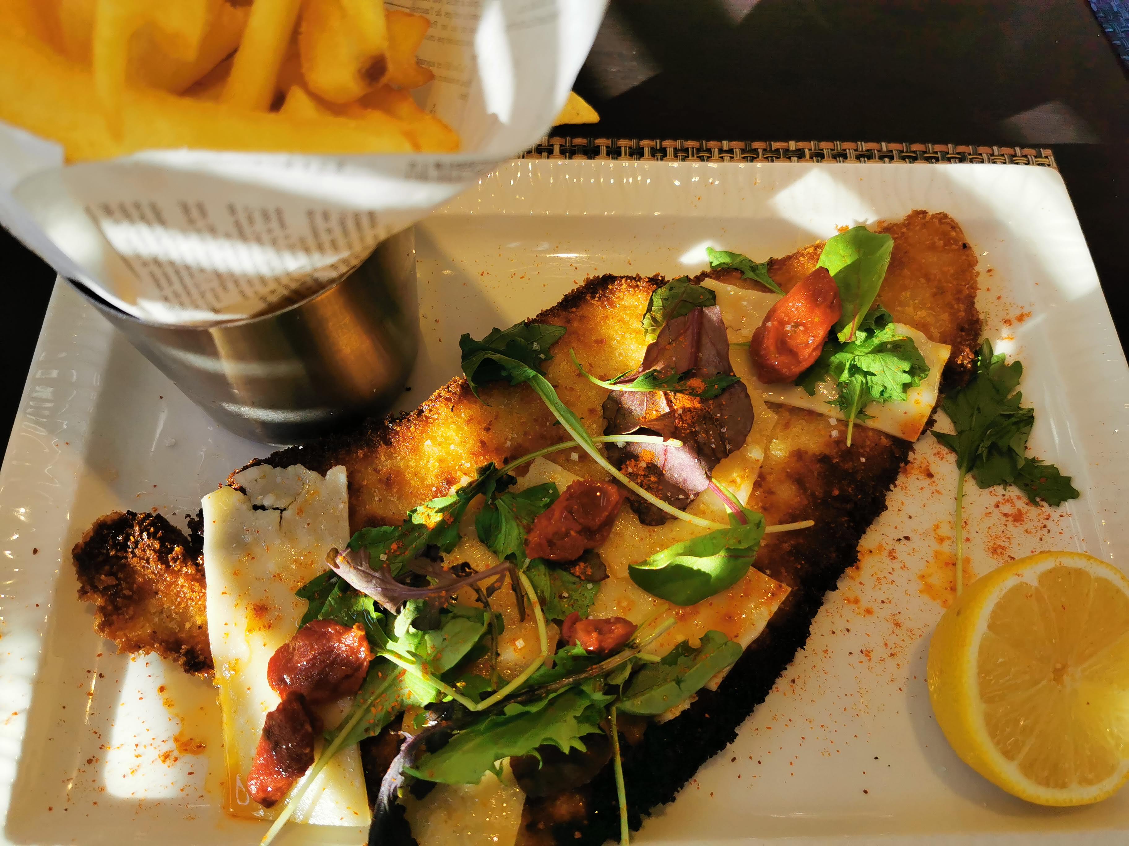 L'emplacement est génial, nous avons eu l'escalope de veau qui était super. Le stationnement est vraiment pénible et les prix sont élevés. Service amical Pour le standard français