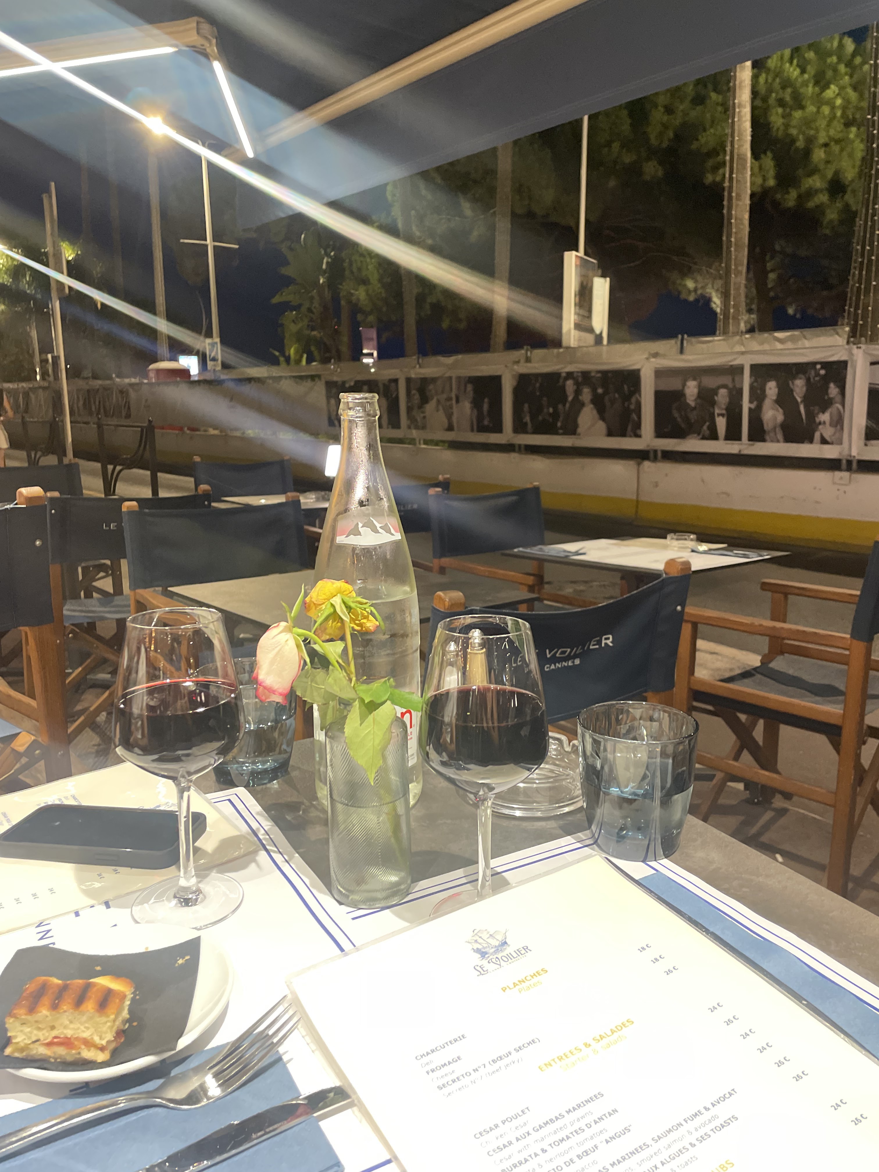 Emplacement parfait pour regarder les gens et profiter du soleil toute la journée. Bonne variété de plats et bon service. Nous y allons à chaque fois que nous sommes à Cannes