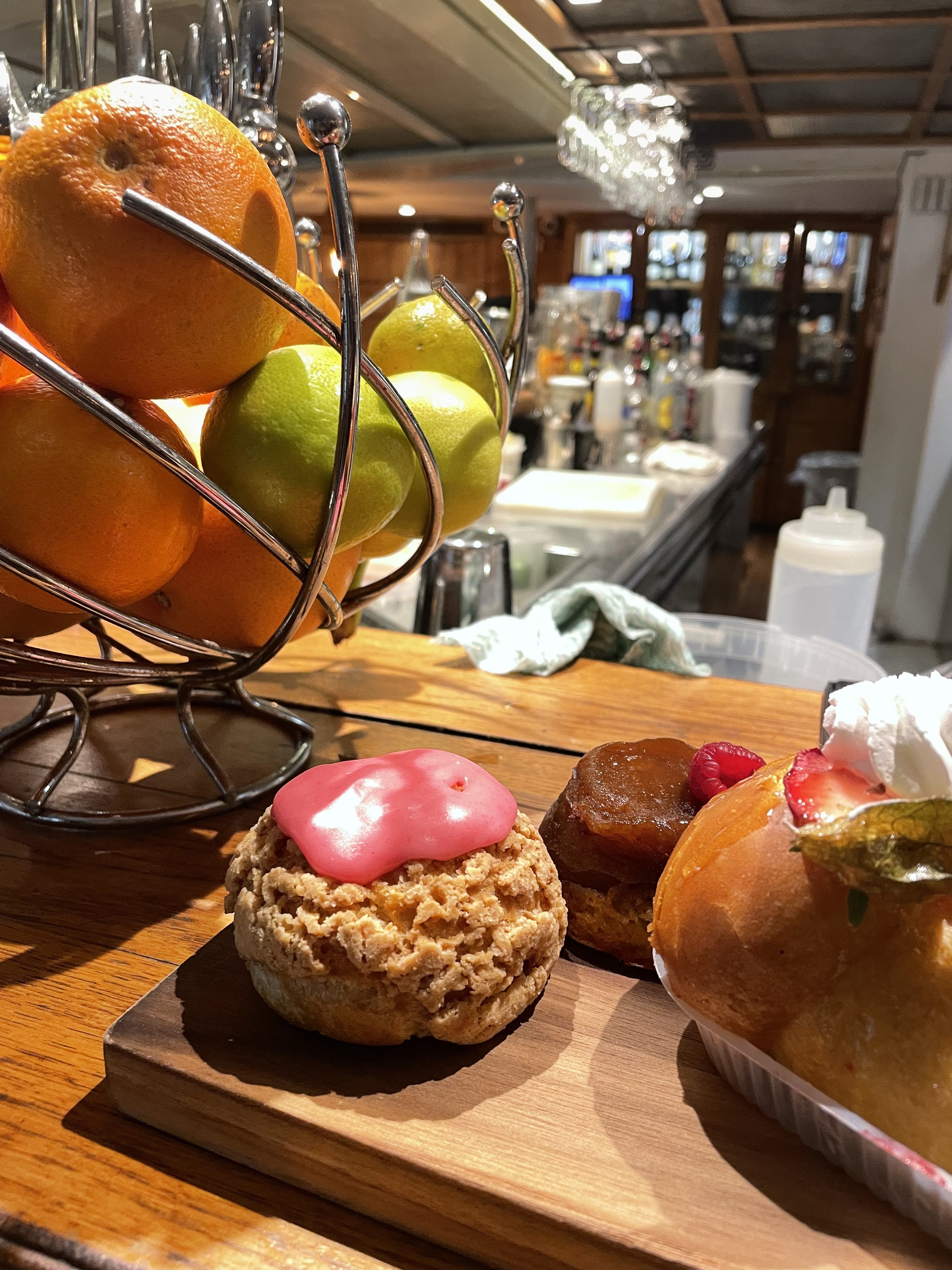 Venu pour le goûter. Très belle présentation de desserts témoins sur une planche amené jusqu’à notre table… sans les prix. Dessert légers, service rapide, serveurs aimable et souriant, très belle présentation. Dommage que les travaux de la rue rende l’accès piéton difficile.