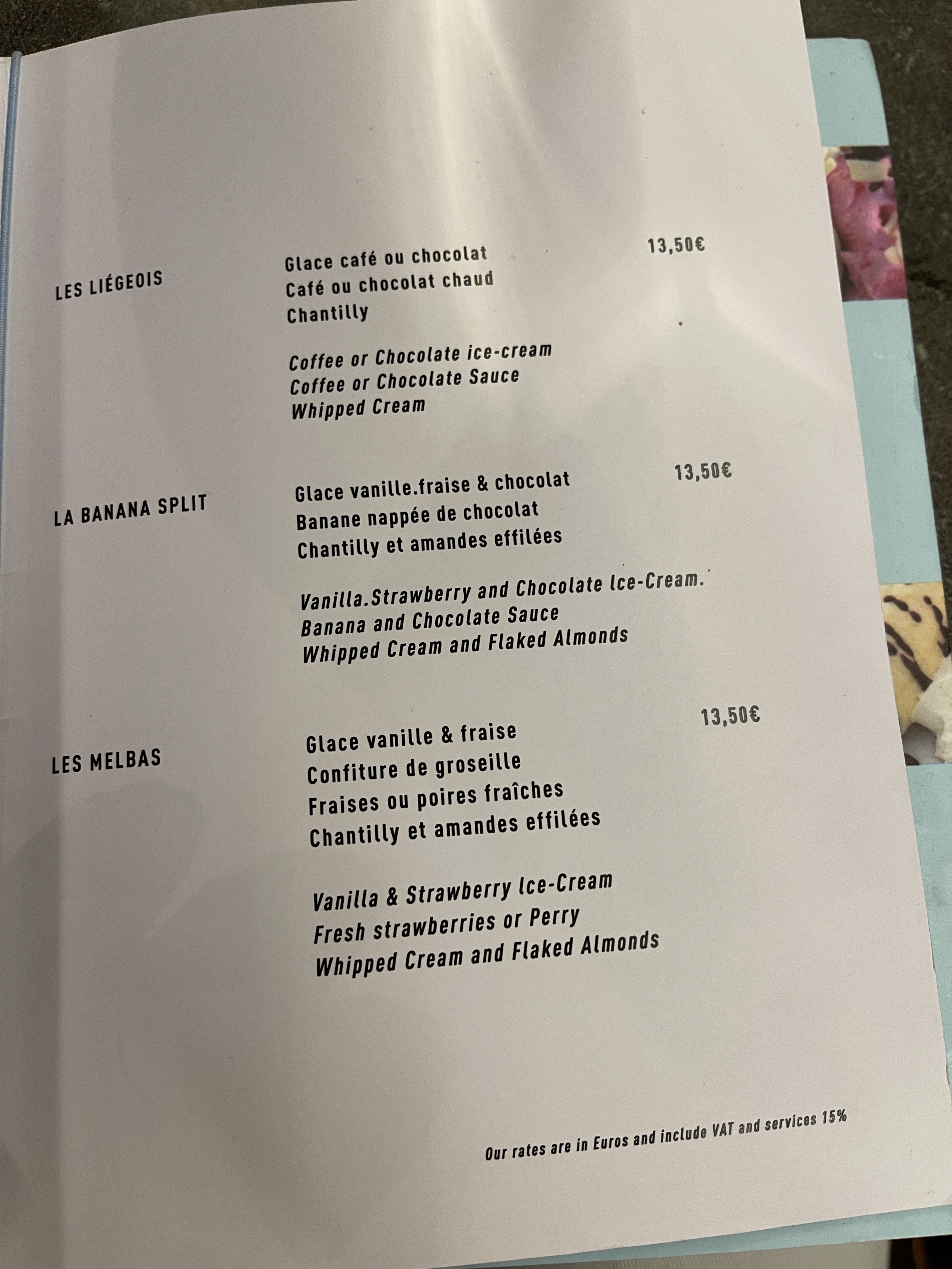 Super chocolat chaud. Un pichet entier pour toute seule ce qui ma fait 3 grandes tasses pour 5 euros 50 😁😁😁 côté resto c est très bon mais un peu cher mais très copieux. Attention au banana splits est immense ainsi que les profitterolles😁😁😁😜😜🤩🤩