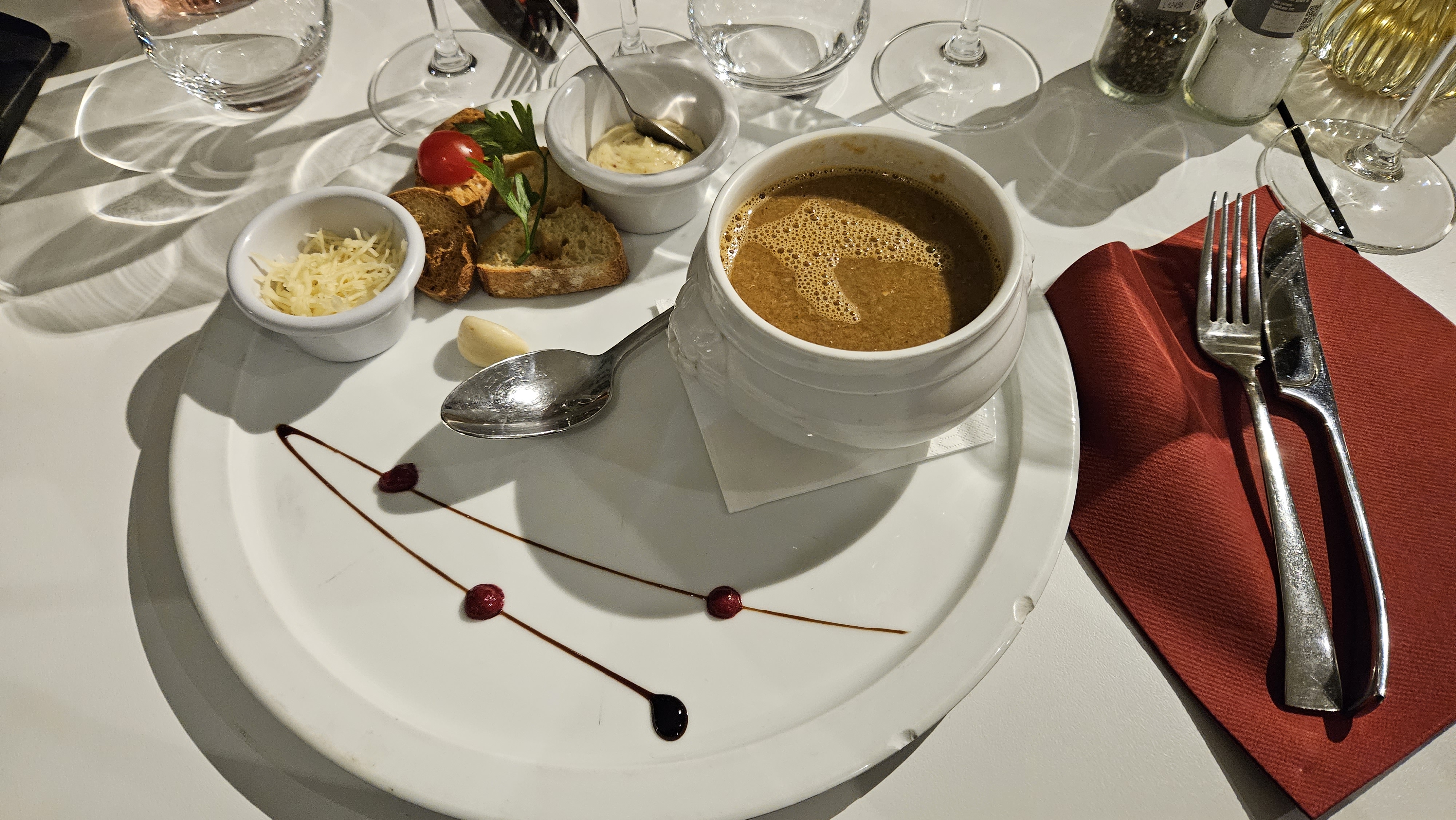 Repas très moyen. Soupe de poisson insipide et sans saveur. Crème brûlée au ricard c est du grand n importe quoi