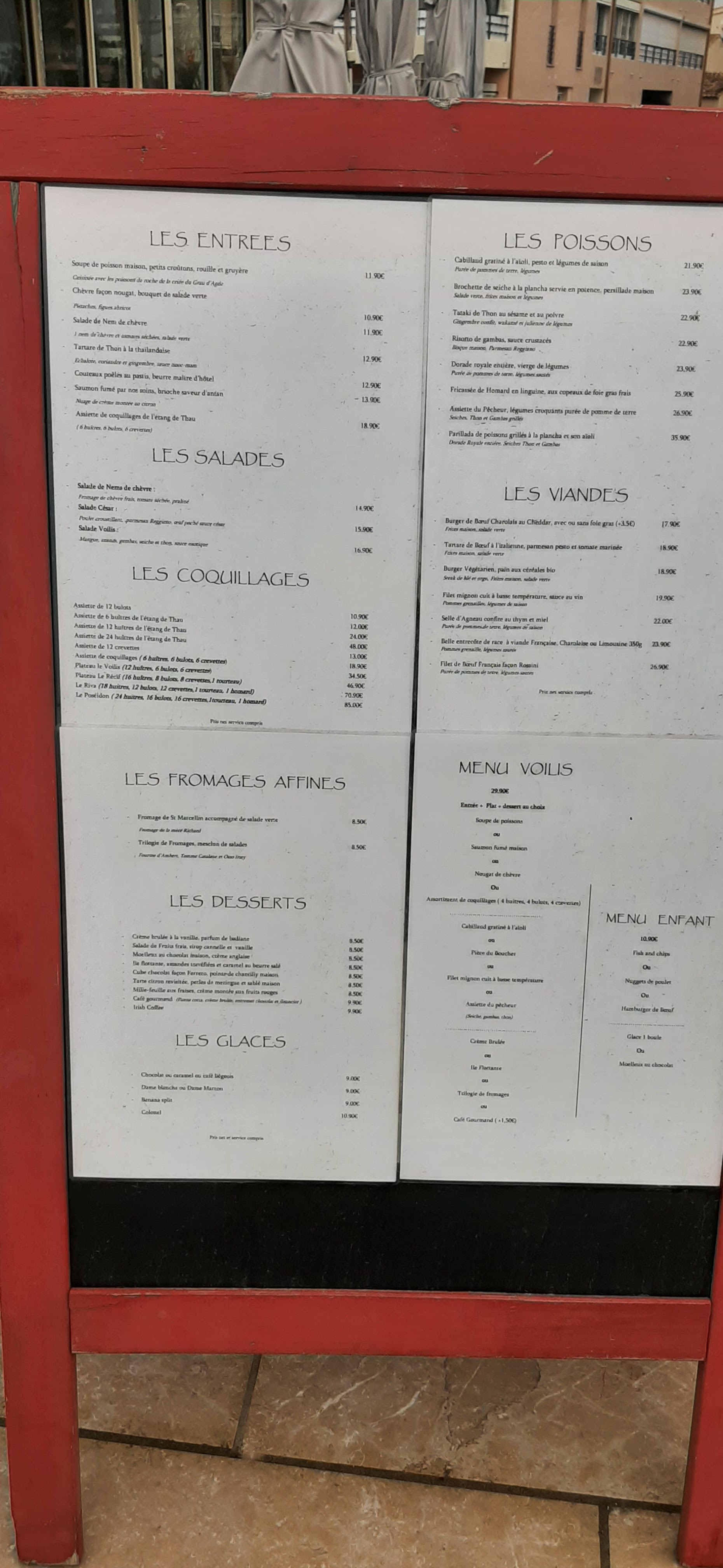 Nous avons testé à plusieurs reprises le restaurant du voilis: cuisine délicieuse, bravo au chef, moules frites à la crème excellente et crème onctueuse à souhait, salade gourmande parfaite avec un foie gras à tomber, frites maison, potence délicieuse, cadre et musique agréables, bien situé et serveurs sympa. Super rapport qualité-prix sur le Grau d'Agde. On y passe un très bon moment.