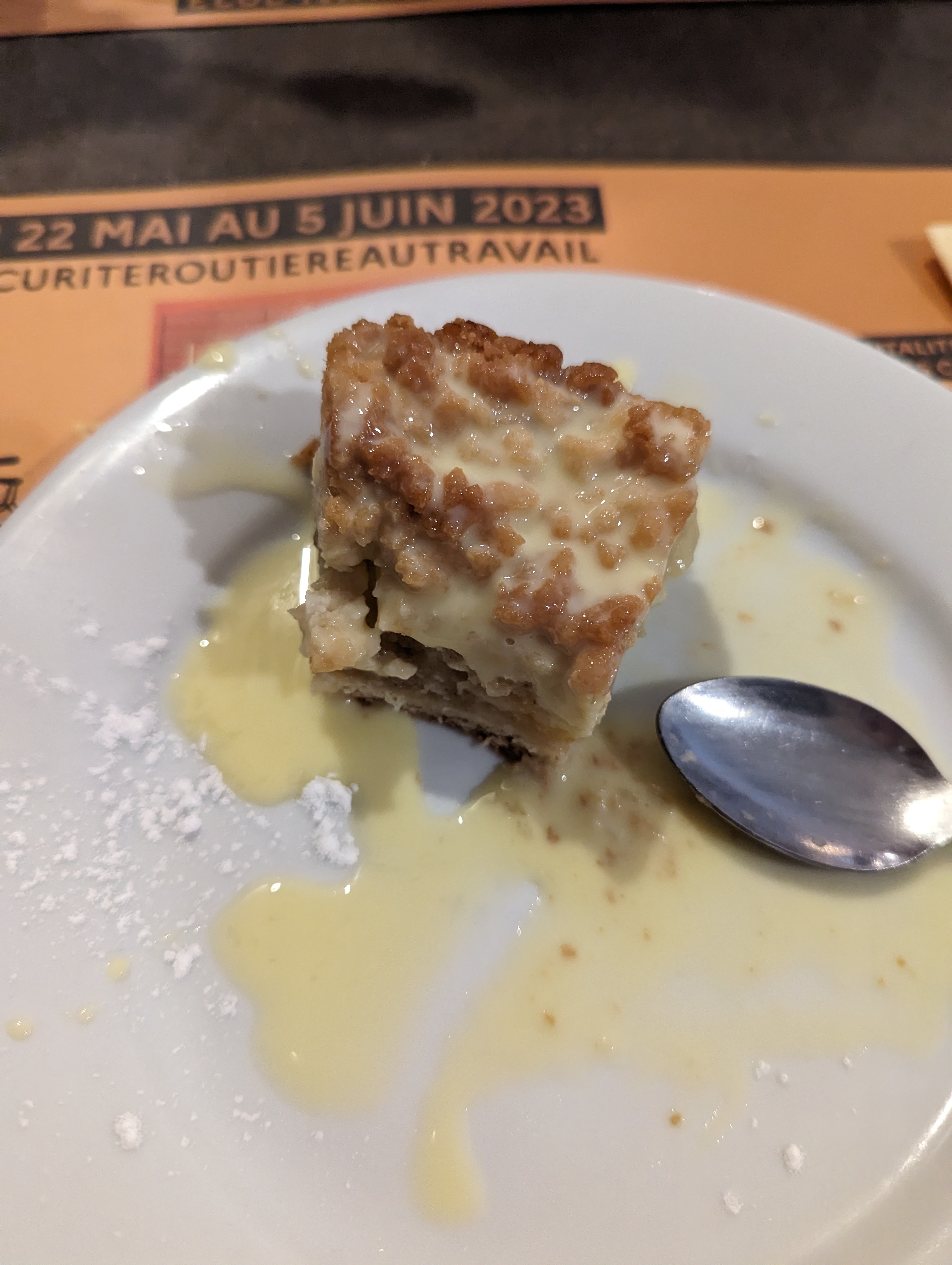 La nourriture est bonne (je ne mange pas de féculent et la personne avec moi pas de viande ... rôti de je sais plus quoi et gratin de patate en plat) mais ni passe sanitaire ni masque nulle part. J'avais faim et je ne connaissais pas le coin sinon je serais allée 100m plus loin.