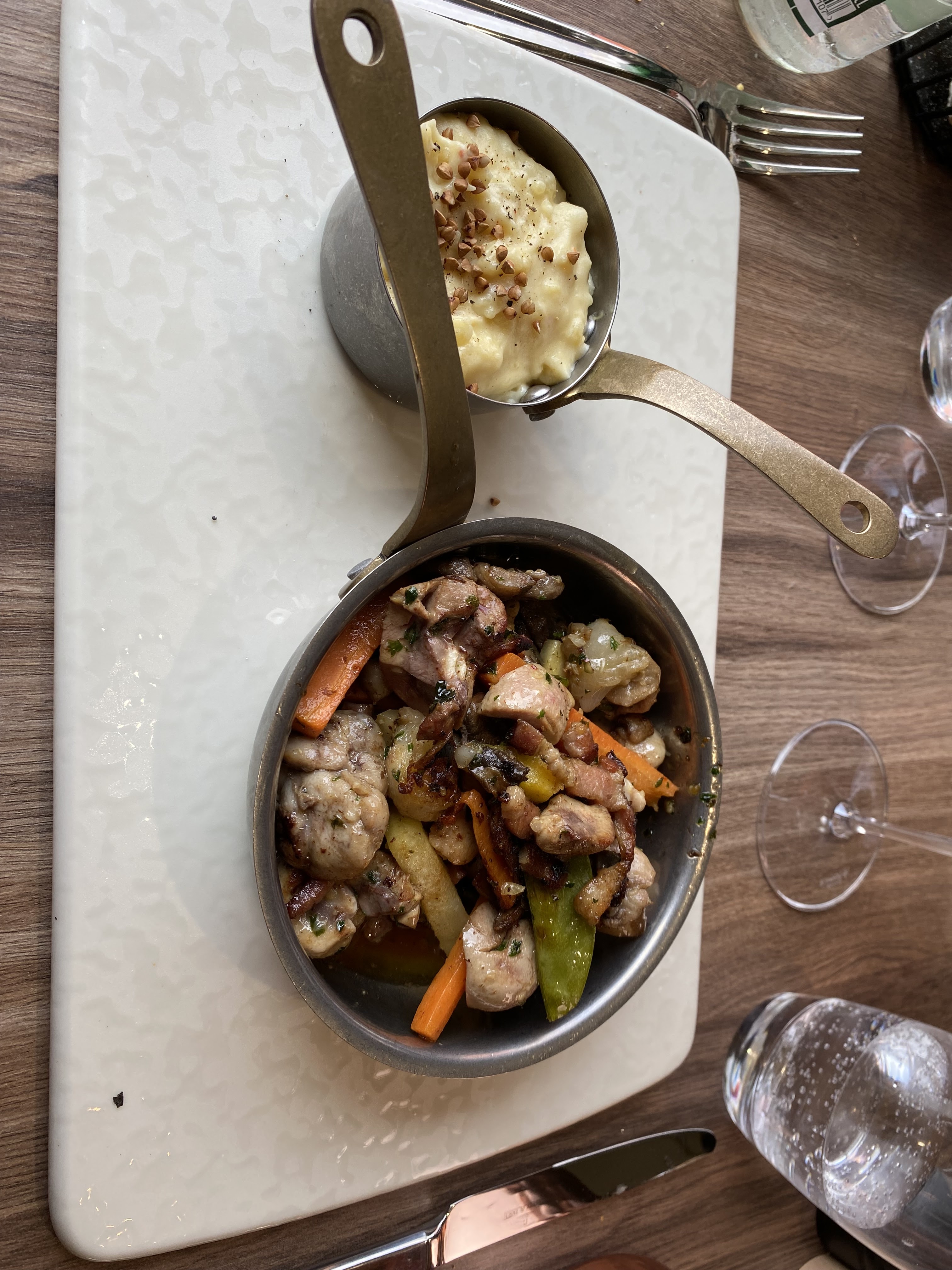 Déjeuner tranquille un jour férié, cuisine délicieuse,en entrée le foie gras très bien et le tartare de thon aux agrumes très bien assaisonné.. En plat la cassolette de rognons et ris de veau délicieuse également mais un peu grasse. Les desserts une tuerie : millefeuille et coupe Jules . Juste un peu déçue que la terrasse ne soit pas sortie pour ce 1er jour de beau temps . Nouveau adresse qui a toute sa place .
