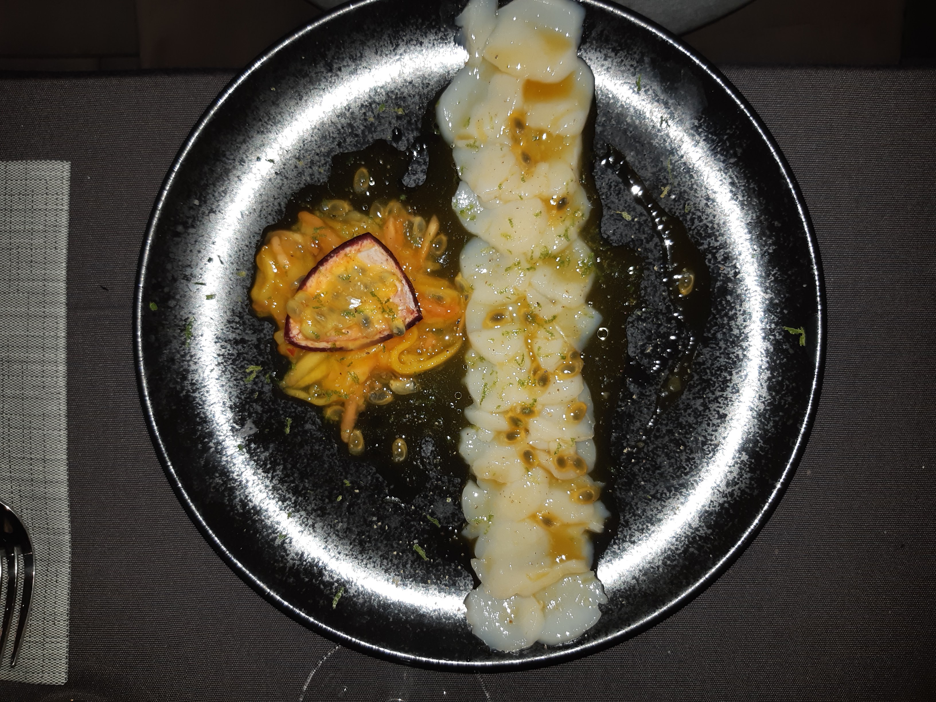 Nous avons essayé le ceviche de dorade, (très rafraîchissant), le tataki bonite, le cabillaud rôti avec Risotto très bien cuit, le filet de rouget, arrosé d'un vin blanc Uby N3 de 2020 qui va parfaitement, pas de dessert, on n'avait plus de place pour lui 120€ à trois, Adresse à découvrir