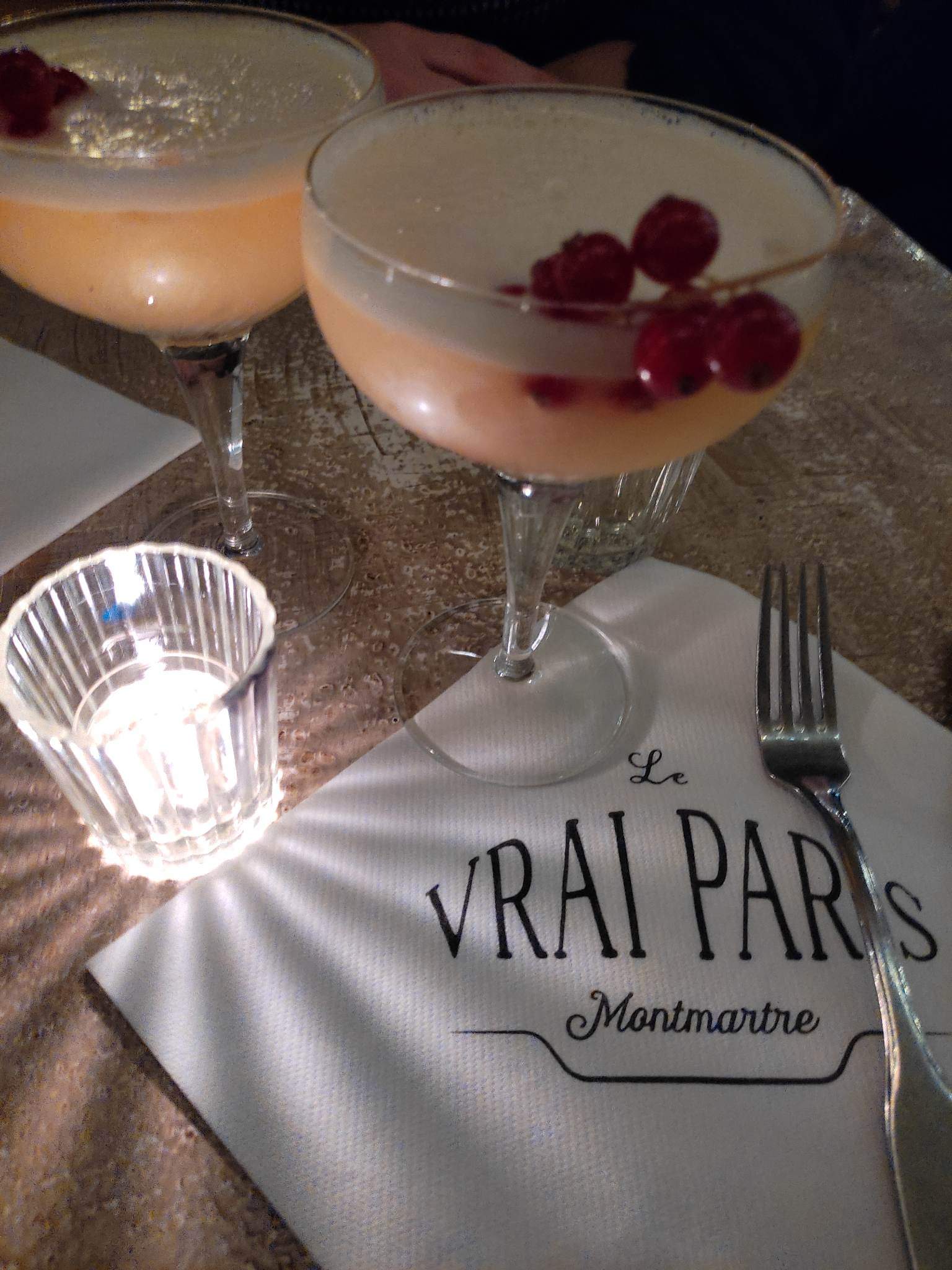 Le vrai Paris Restaurant chic et cosy du quartier des Abbesses, Montmartre, Le vrai Paris m'a séduit. Après une bonne balade dans.le quartier, mes amis et moi avons savouré de bons cocktails sur place. Un vrai délice, pour le goût, j'accorde un 5*. Mais au niveau de la quantité, c'est hallucinant. Pour 14 eur le cocktail, en deux gorgées c'était fini. Vraiment dommage. Les prix des plats ont lair correct.mais en ce qui concerne des portions servies....faut tester pour découvrir. Sinon le personnel est souriant, gentil, pleins de bons conseils sur les spécialités de la maison.