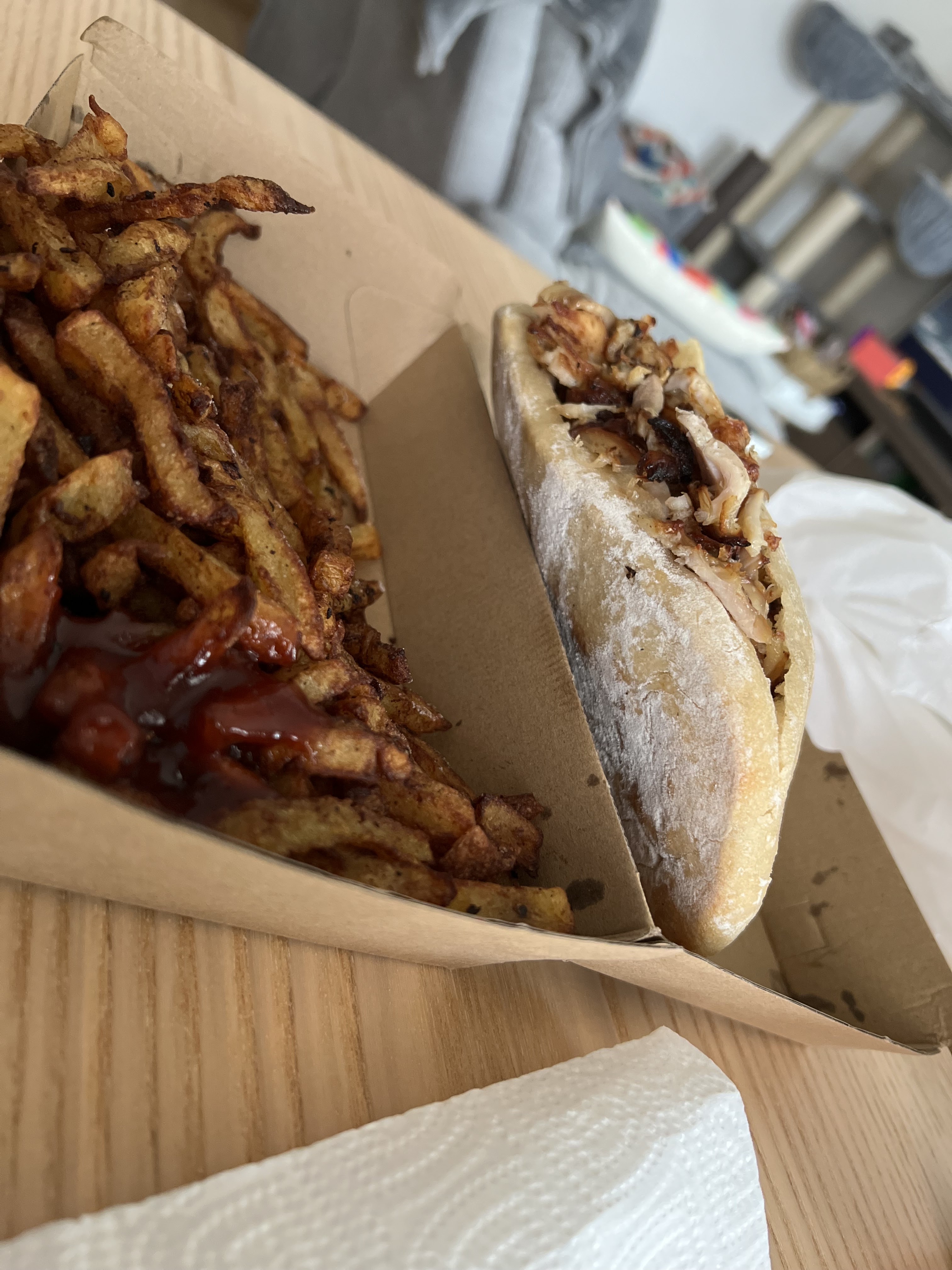 Alors là je suis agréablement surpris par mon kebab! Il était super bon! Un bon pain de la boulangerie, une bonne viande de qualité (non grasse), et ces frites maison…un régale! 😋😋😋 Vraiment, je vous recommande d’y aller passer votre déjeuner ou dîner! De bonnes quantités que cela soit en viande ou en frites! Merci je me suis vraiment régalé à manger votre Kebab. 👍