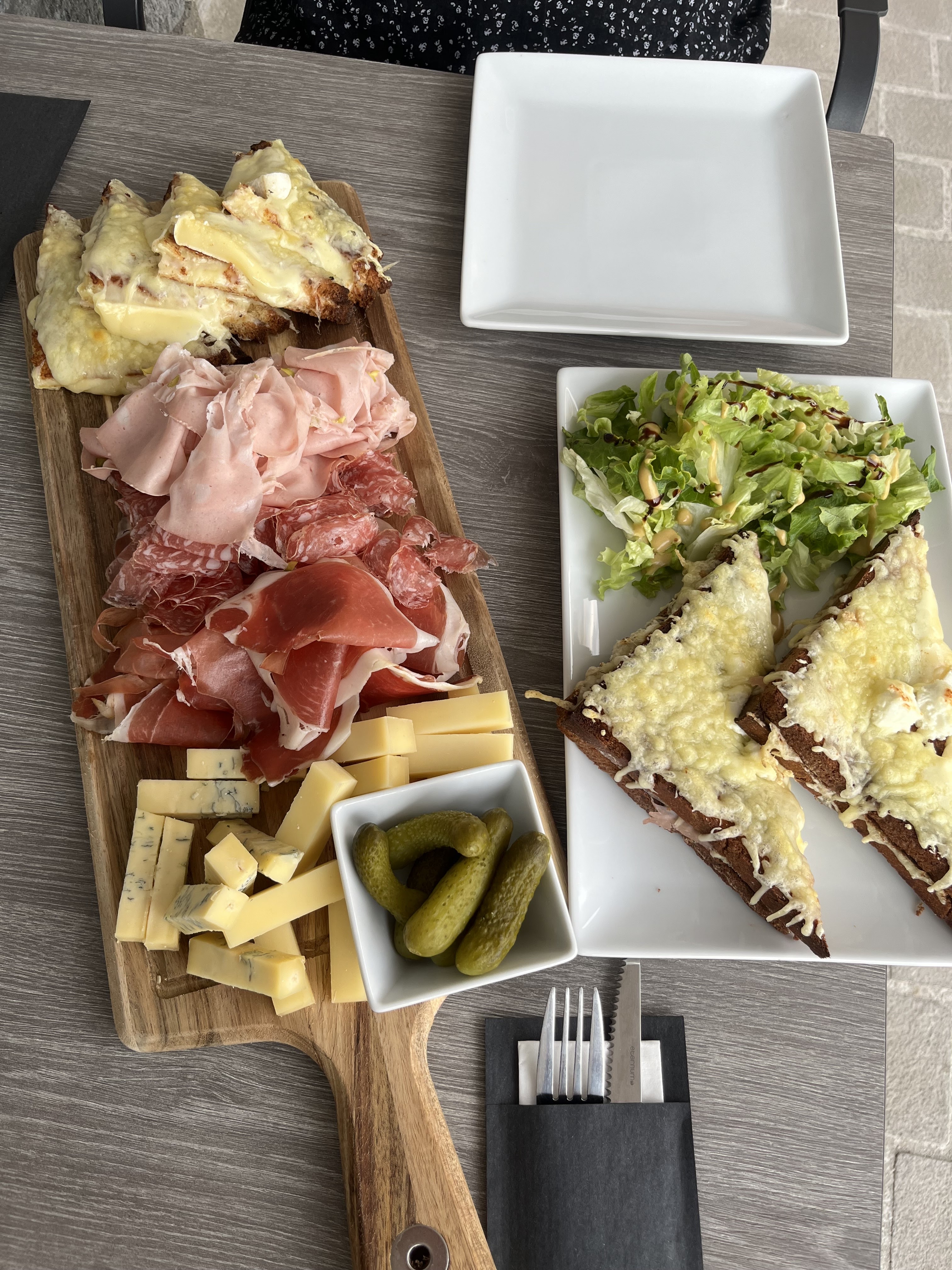 Les croques sont bien garnis et bons, la planche a partager est top + un service très aimable, Top !