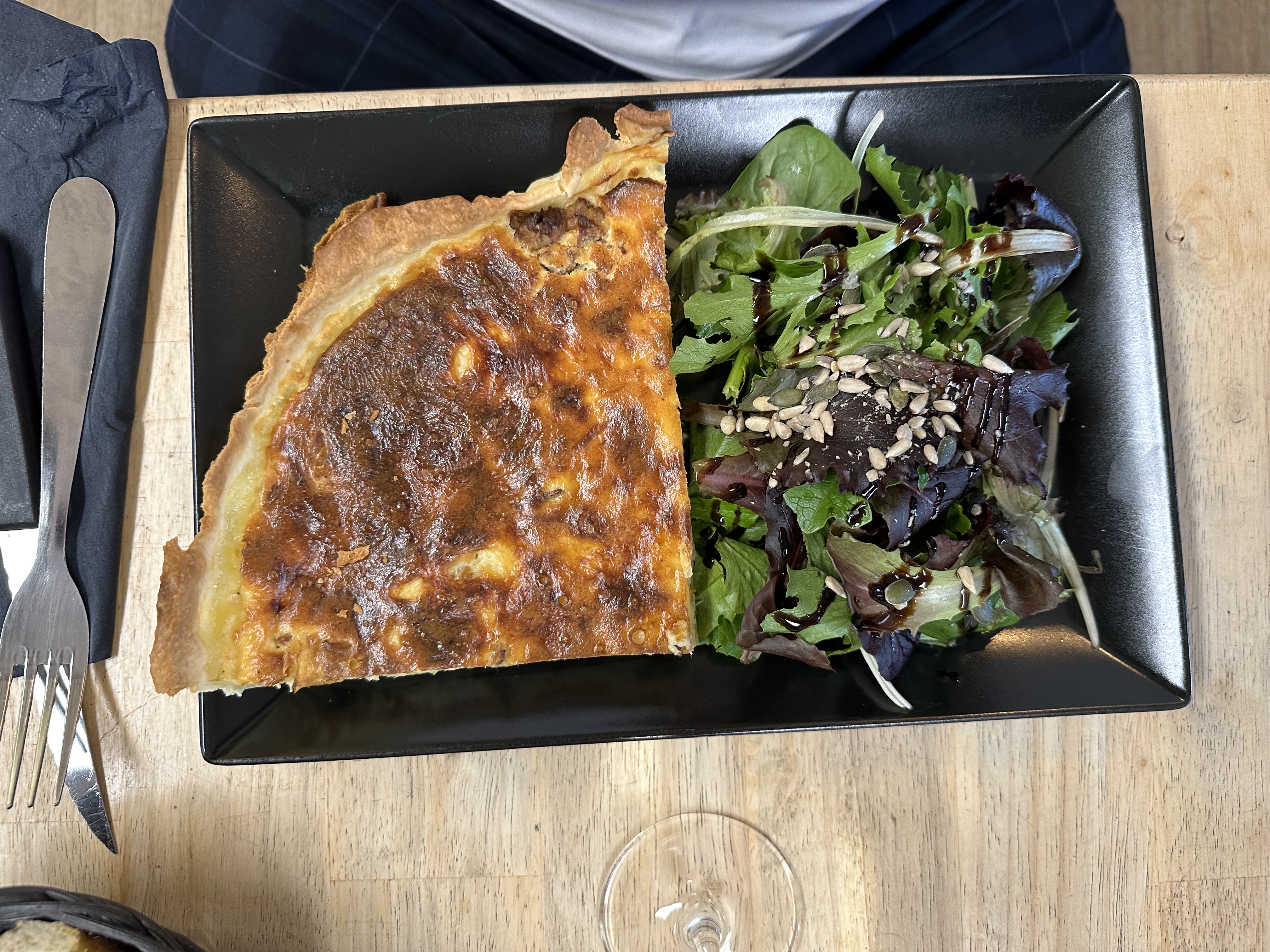 La quiche au jambon cru et à la tomme au fenugrec était top, le camembert rôti poivré aussi. Excellente adresse, à tout point de vue.