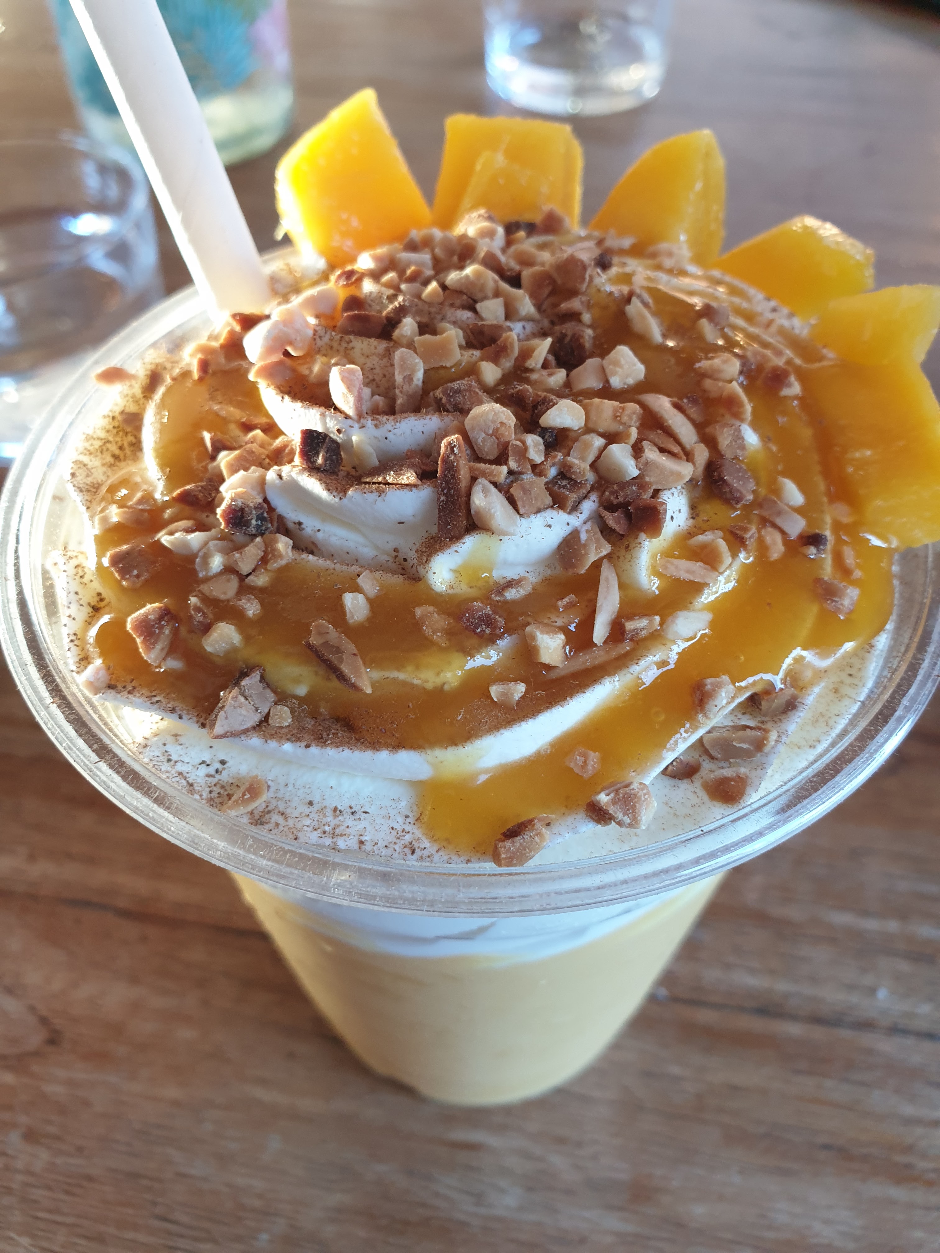 Super endroit les pieds dans le salle. Ça vaut le coup de sortir de la rue principale. Accueil sympa, jolie déco et très bons smothies bowls qui sont très généreux!