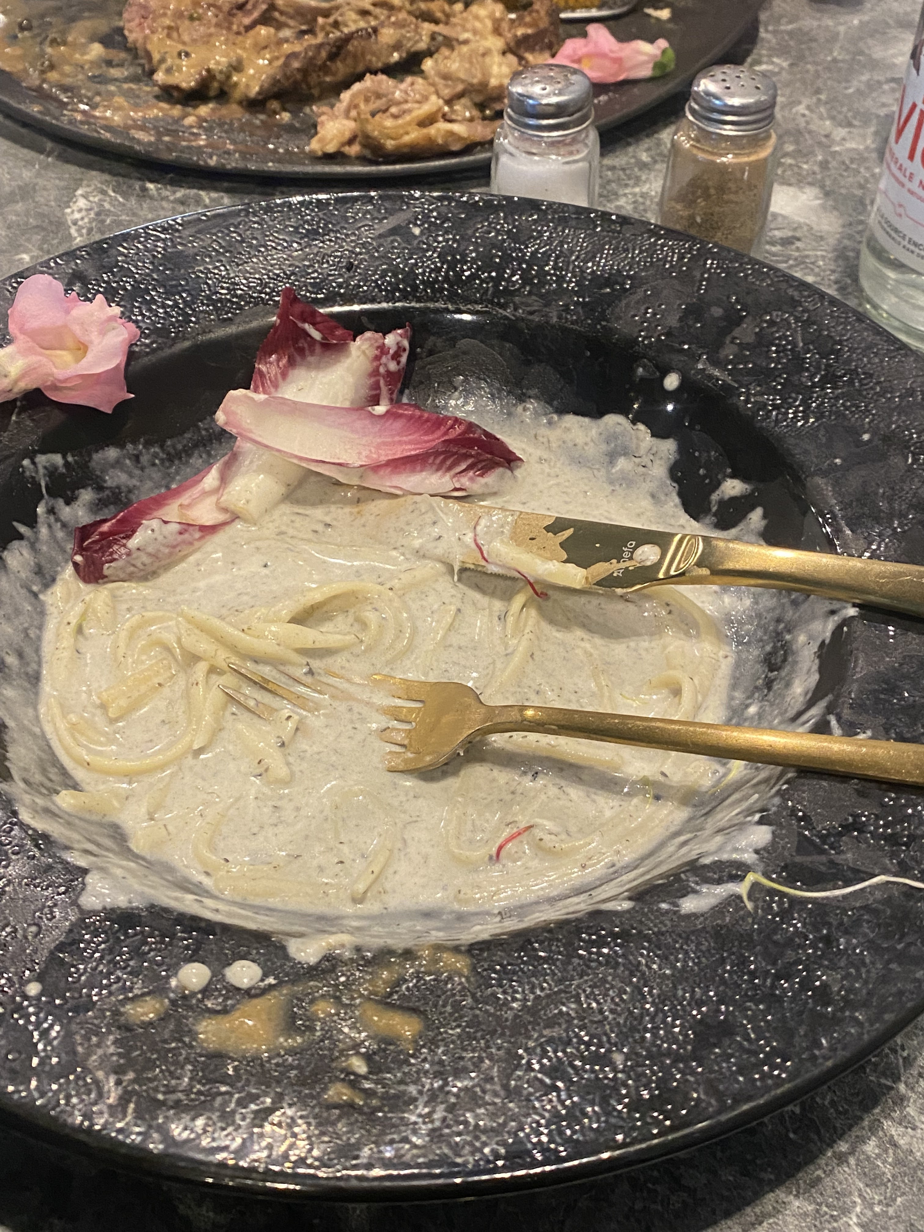 Je suis allé dîner il y’a quelques jours la bas avec mon mari pour son anniversaire, très déçu, nous sommes arrivés le restaurant vide et on nous a pas vraiment laissé le choix pour nous placer, le service laisse à désirer. J’ai commandé des pâtes à la truffe (grande adepte de truffe) et c’était vraiment pas bon … les pâtes étaient dans une marée de sauce, 24€ l’assiette quand même. Mon mari quant à lui a pris une entrecôte qui était inmangeable rempli de gras et de bouts durs (regardez les photos des bouts de gras) servis avec un peu de salade et de frites le tout pour 30€.. resto qui se croit luxueux avec des prix de malade mais avec une qualité mediocre