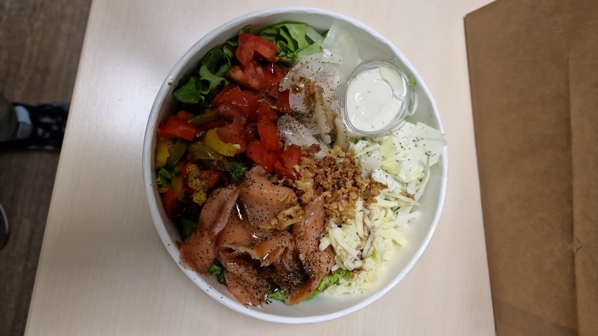 Jusqu’a maintenant jamais déçue par les salades commandées ! Savoureuses et très bien garnies Un régal