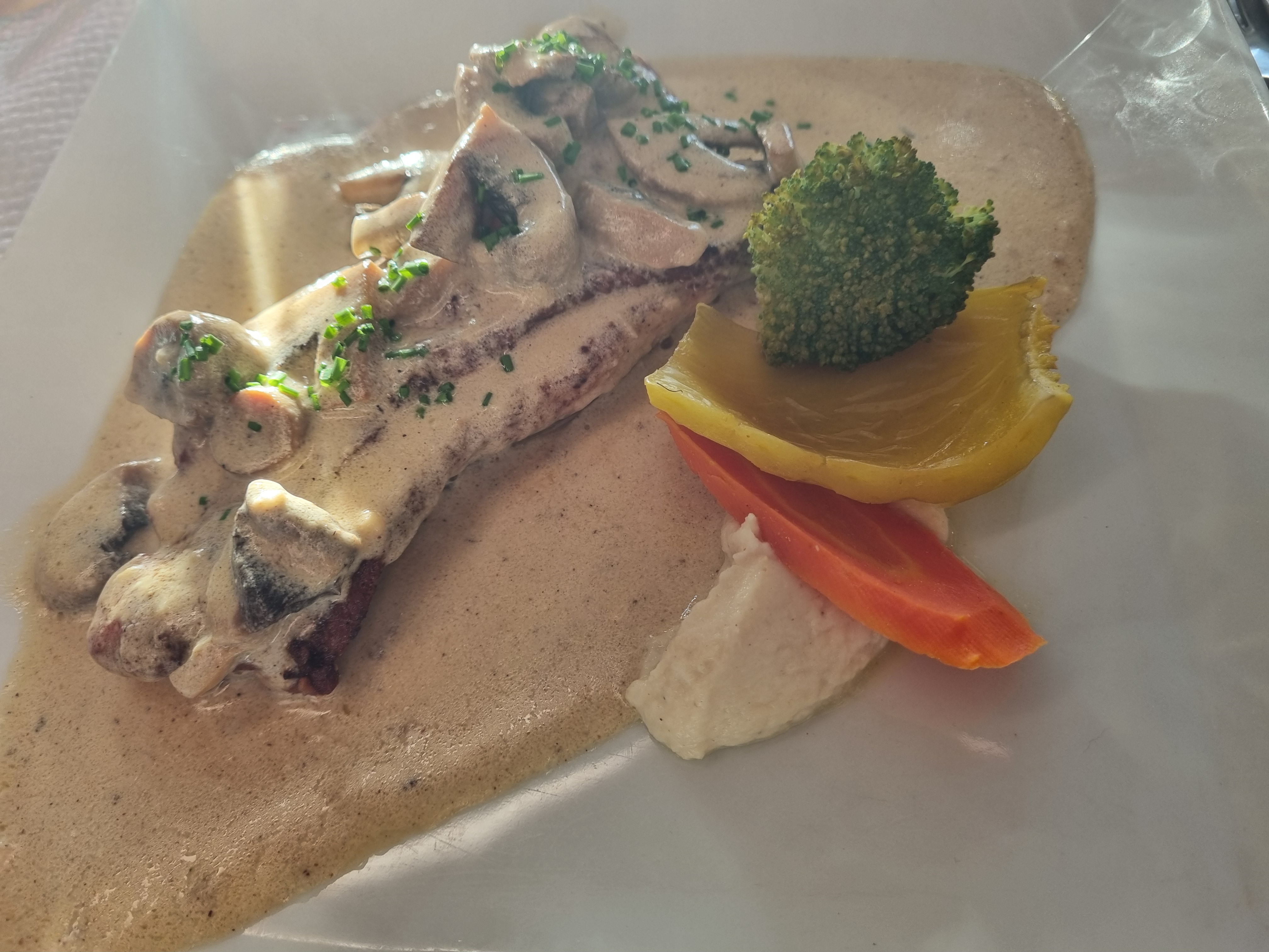 Beaucoup d attente , cuisse de grenouille très bonne et bien servis mais filet de sandre pas assez épais pour le faire griller ,se qui le rend très sec attention aussi à l estragon dans la sauce, il prend le dessus sur le gout des girolles. Pour parlé peu,( j avais commandé un filet de sandre aux girolles et j ai eu un filet de sandre à l estragon avec des girolles). Mais bien servis quand même. Attention aussi à la couleur des manges tout (pas refroidi après la cuisson donc kaki et pas vert ). Mais nous reviendrons pour se faire une autre idée, peu être que mon avis pourras vous servir.