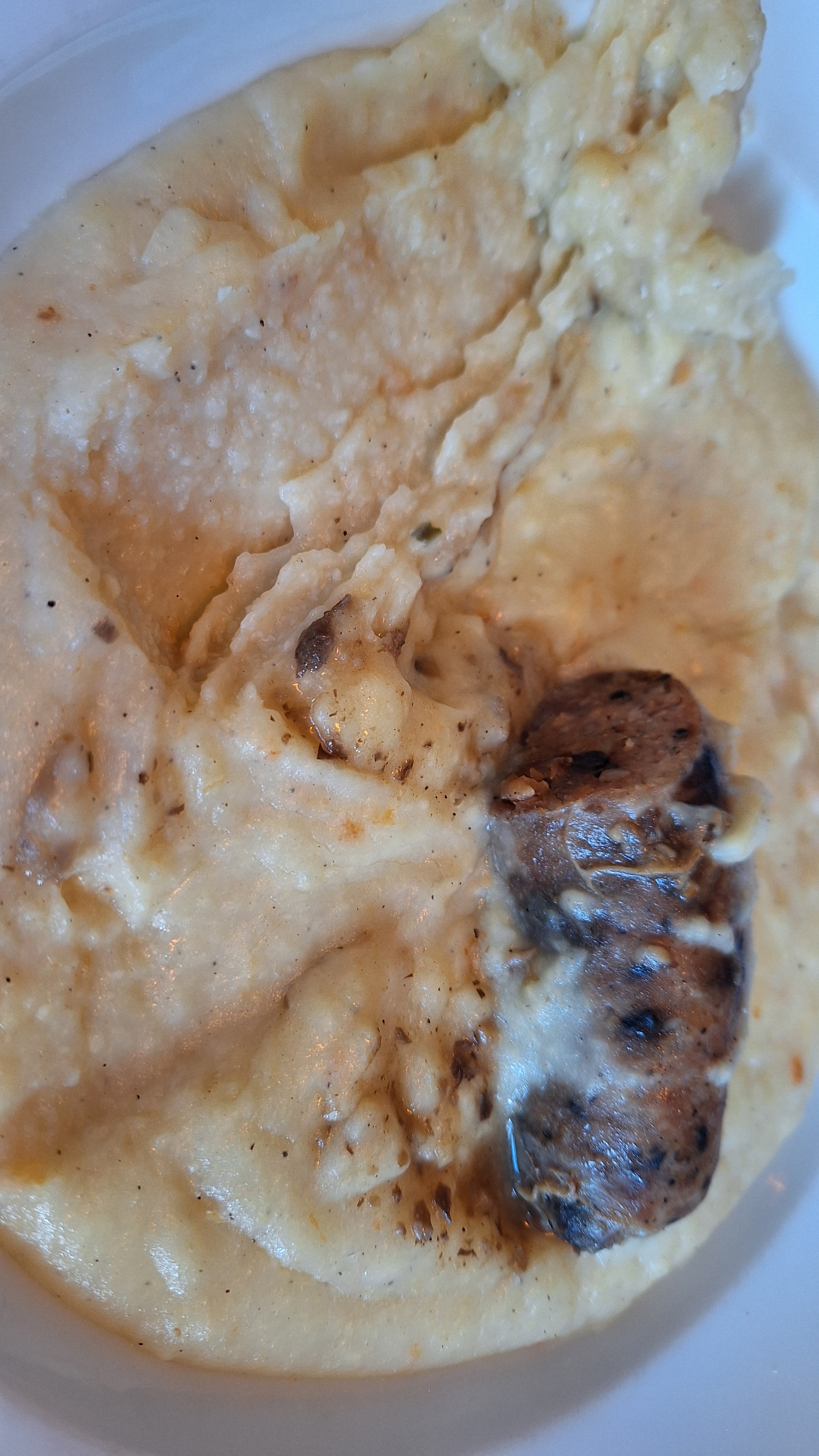 L'aligot qui n'en est pas un.... une purée grumeleuse ( poudre déshydratée ?). Jamais vu ça. Bon service et pas cher....