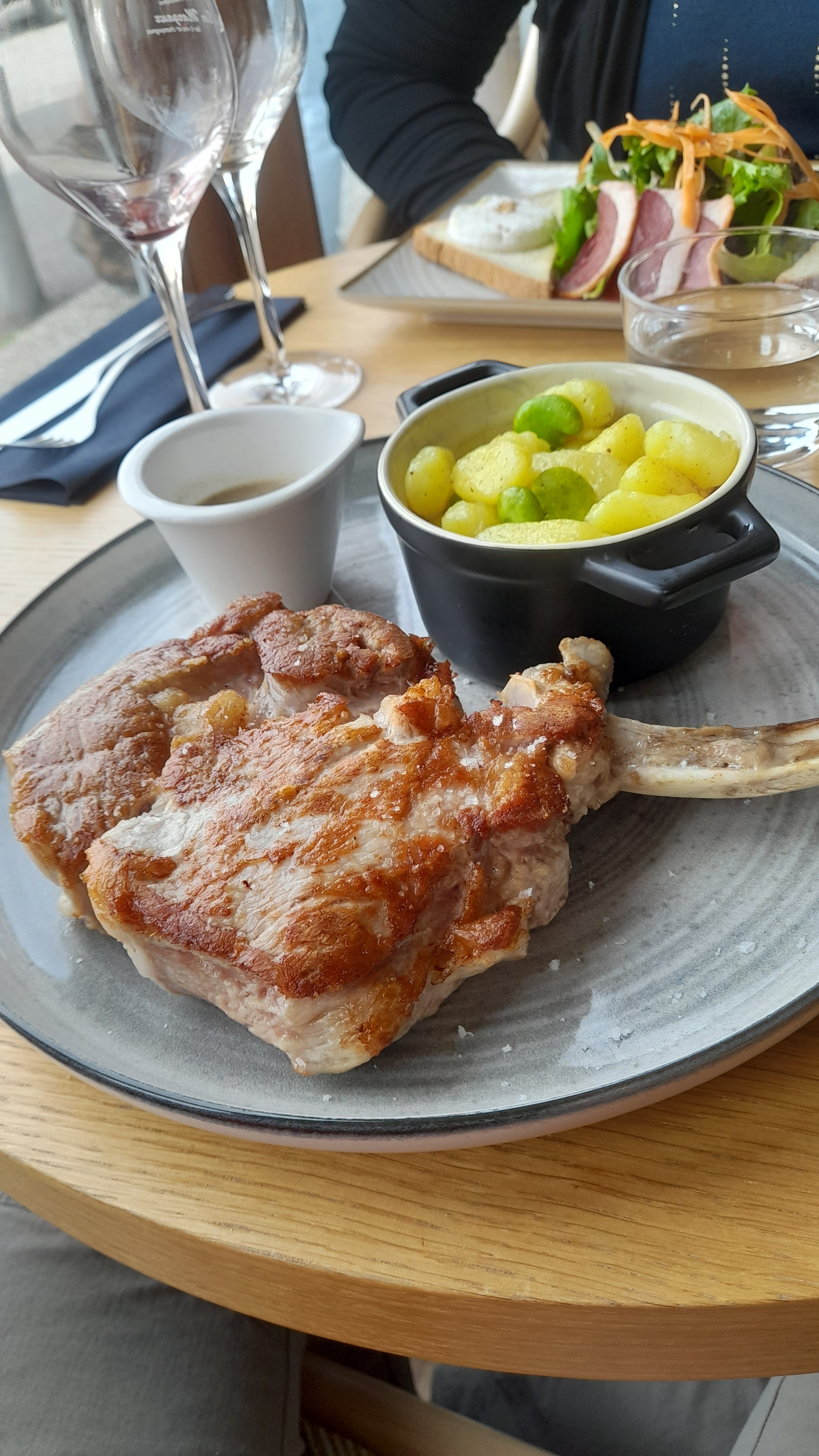 La qualité de la nourriture est extrêmement bonne, le prix est juste, les frittes sont faites maison et le vin est bien sûr incroyable. Je le recommande vivement !