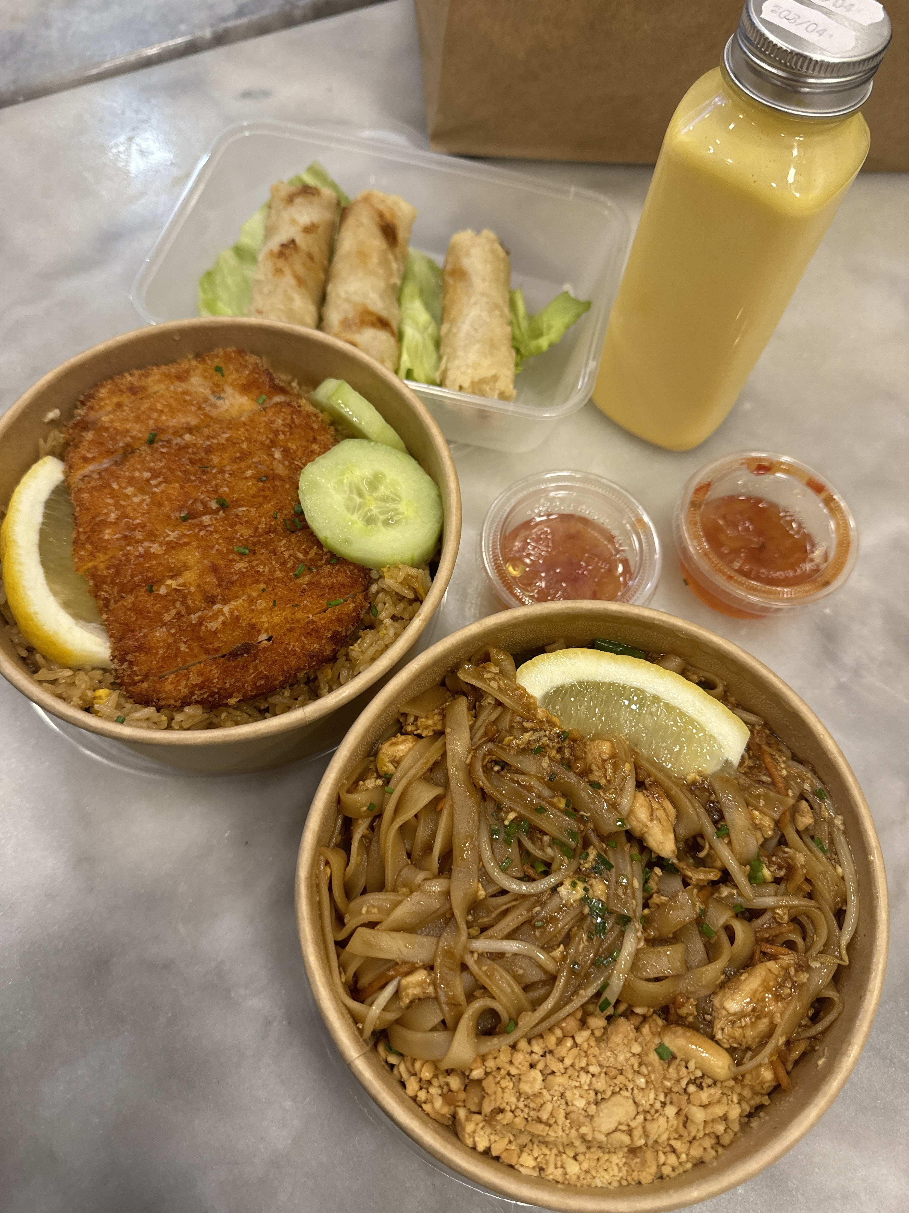 Work Thai que nous avons pris. Était délicieux et bien élaboré. Et l’endroit est propre.La jeune dame qui nous a servi était accueillante