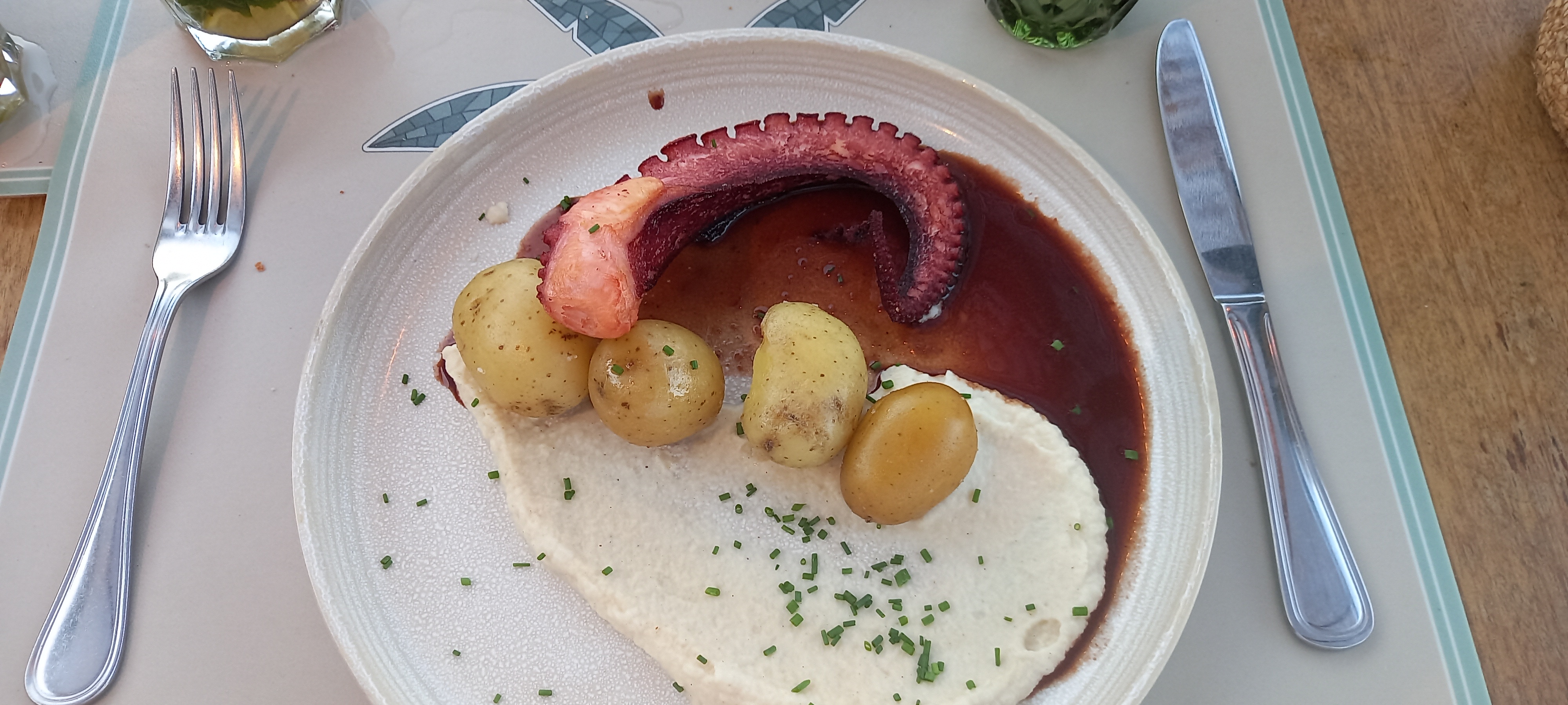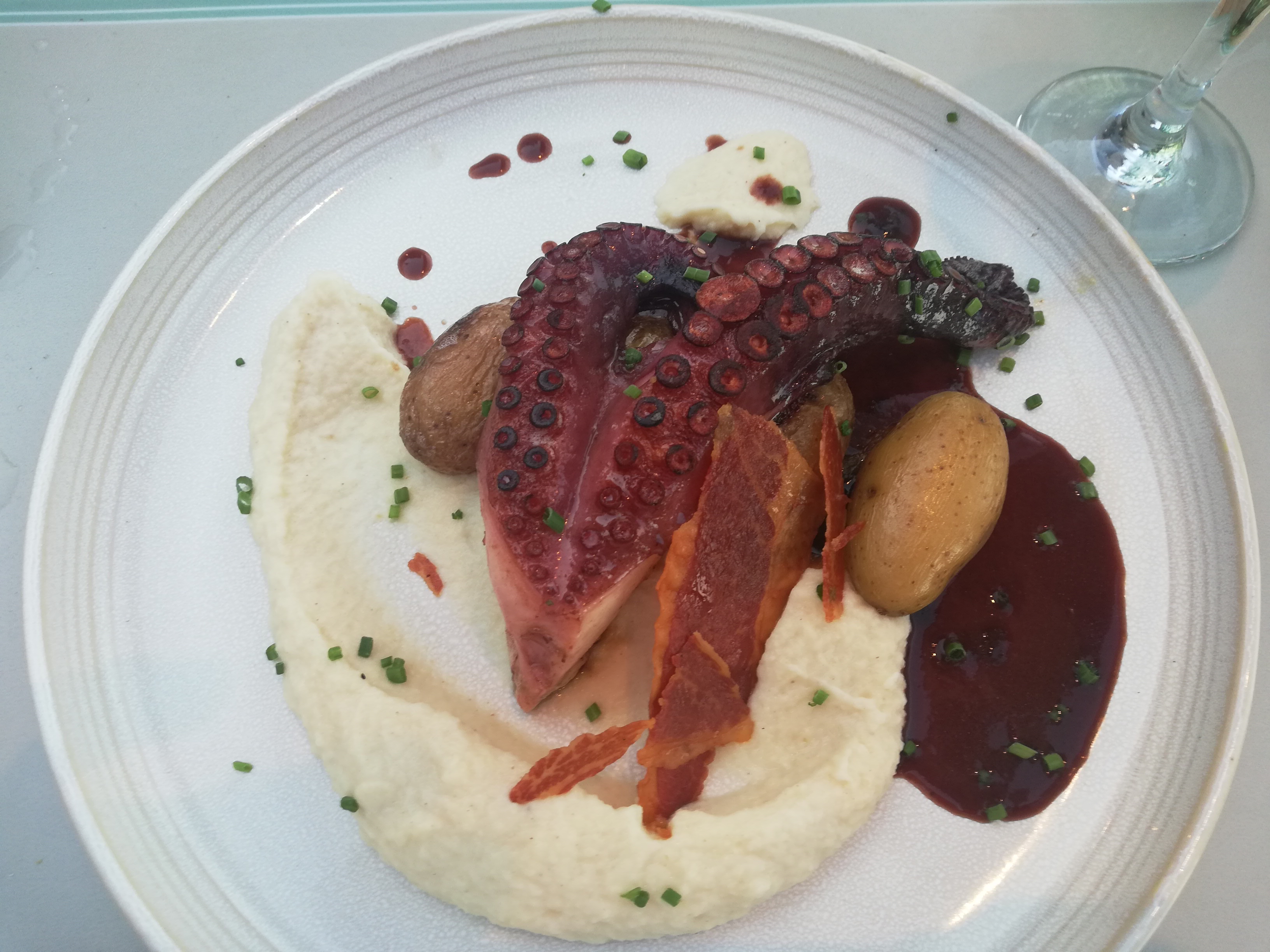 Une très bonne cuisine. Avec une mention spéciale pour le poulpe grillé et les légumes confits .Un service très correct. Emplacement de premier choix les pieds dans l eau.