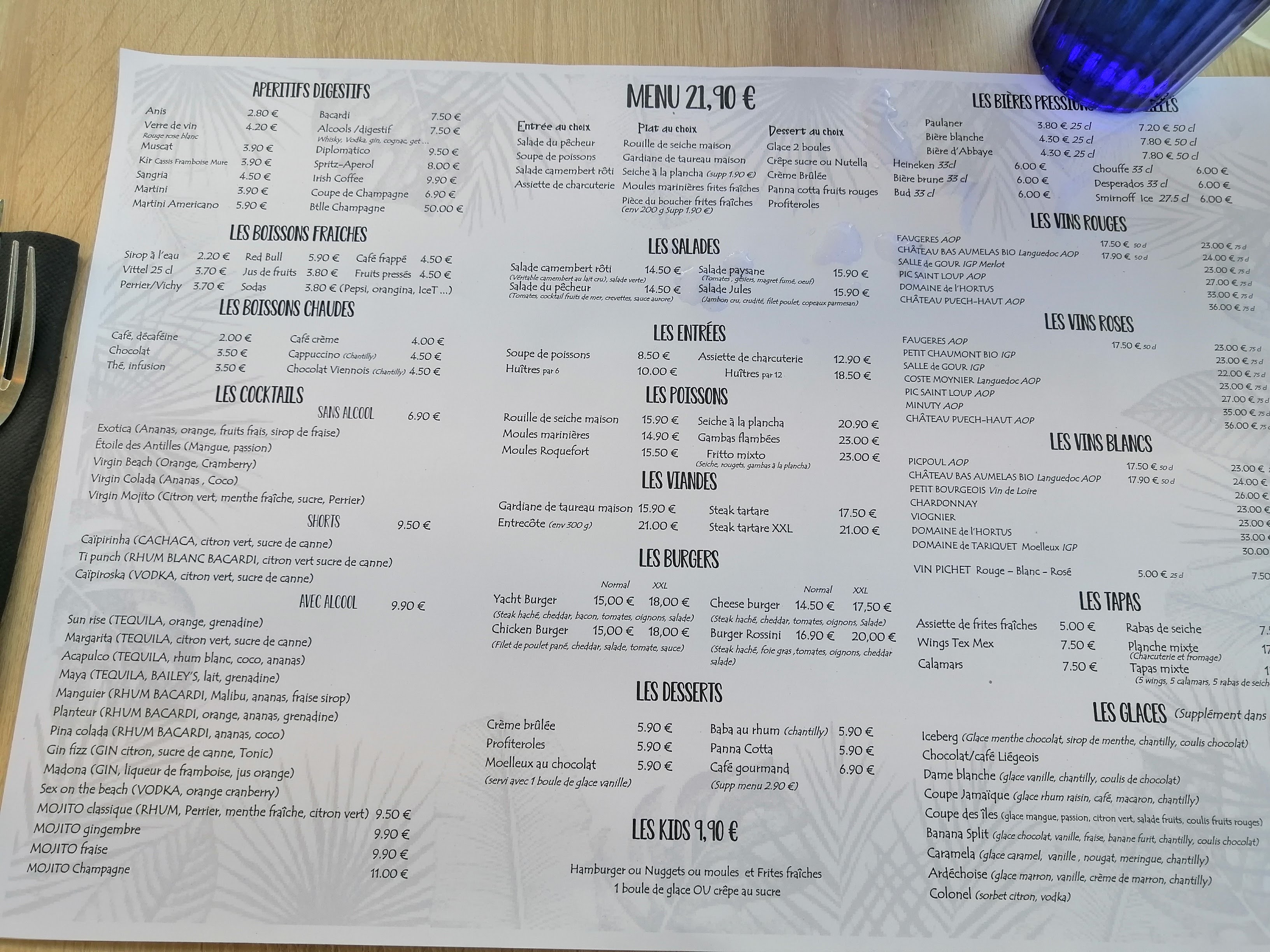 Le menu à 19,90 (entrée /plat/dessert) nous a décidé à nous y installer, on n’a pas regretté. Très bon rapport qualité/prix, le meilleur du port de Carnon. Et en plus la serveuse était super agréable. On y reviendra!